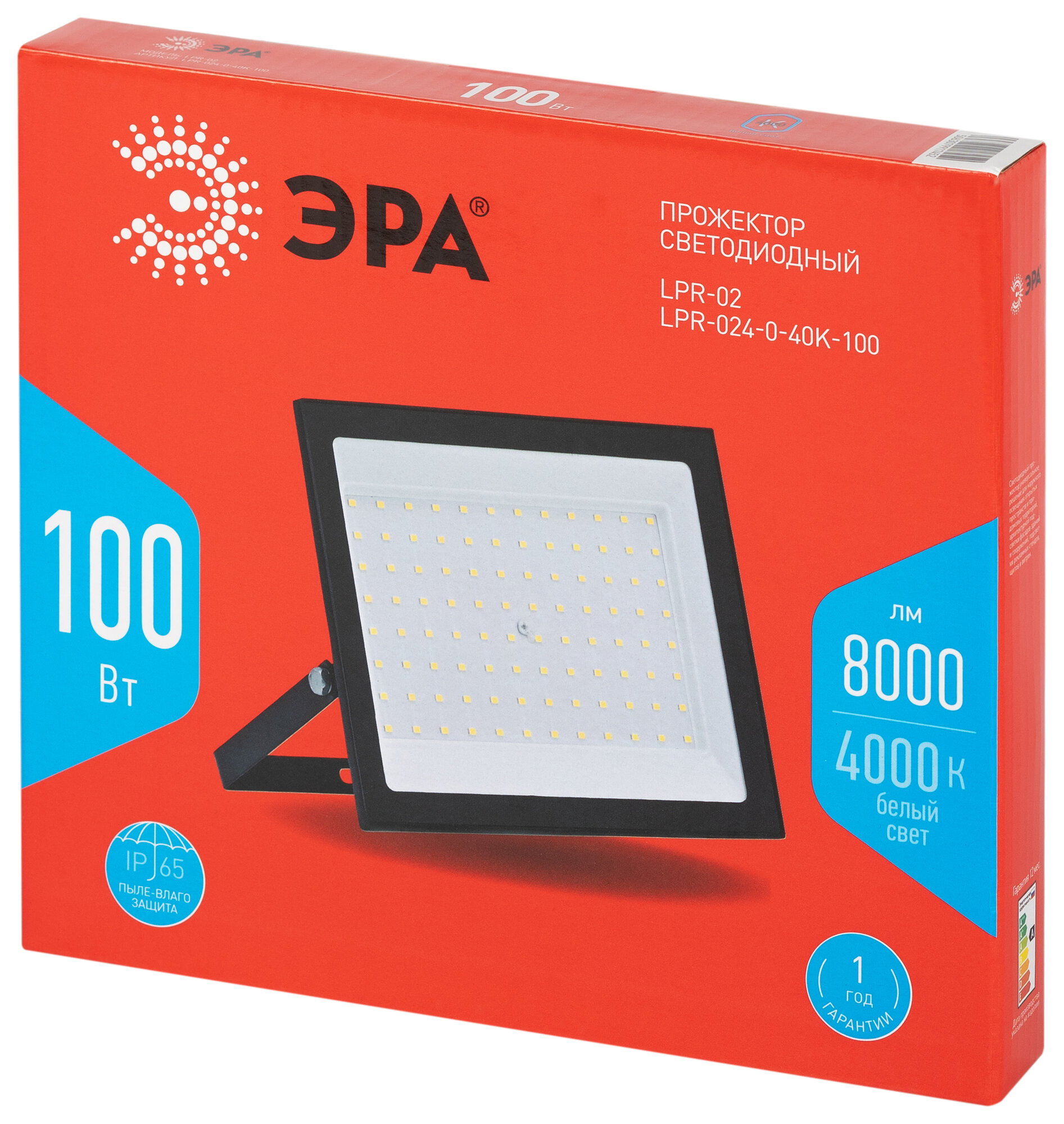 Прожектор светодиодный уличный ЭРА RED LINE LPR-024 влагозащищенный от сети, 100Вт 4000К, IP65 интересное: