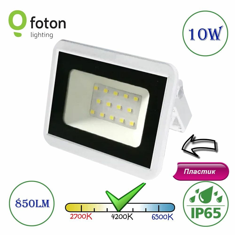 Прожектор светодиодный уличный 10W 4200K 850Lm ip 65 белый Plastic Foton Lighting интересное: