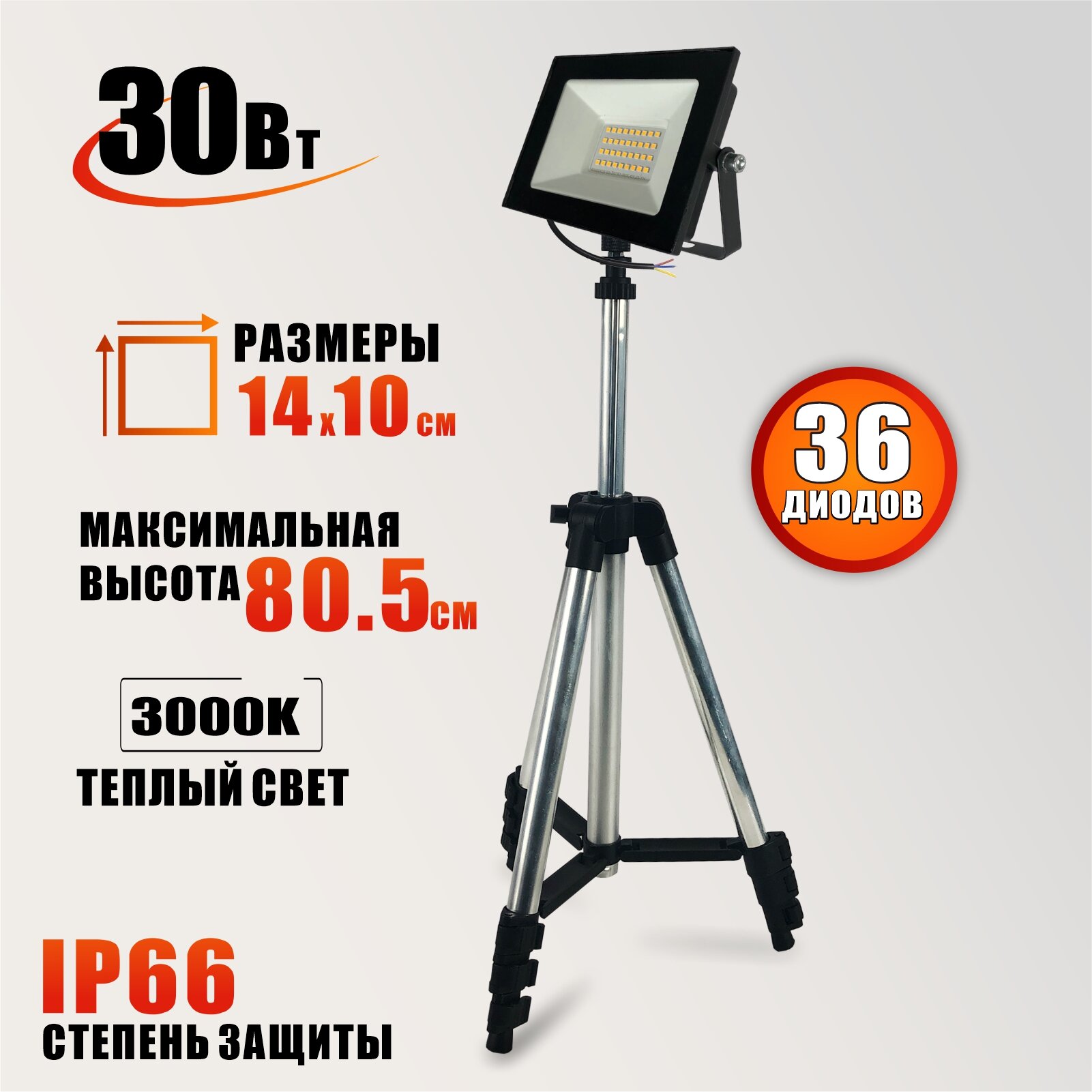 Светодиодный строительный прожектор 30 Вт, 3000K, теплый свет, на штативе 3110-PRJ интересное: