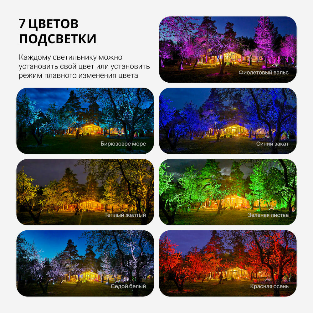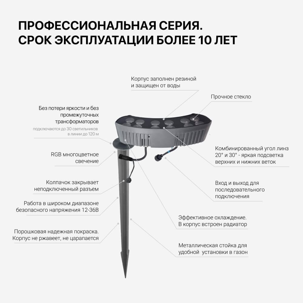 Светильник-прожектор RGB для деревьев с низкой кроной 36Вт, 12-32В со стойкой основанием интересное: