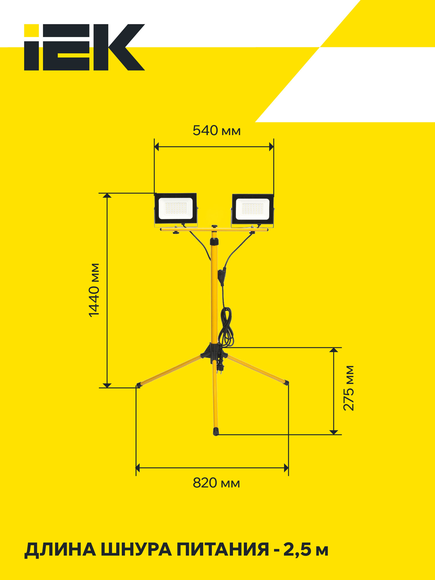 Прожектор светодиодный СДО 06-2х30Ш штатив IP65 6500К IEK, 60Вт, 6500K, переносной на штативе интересное: