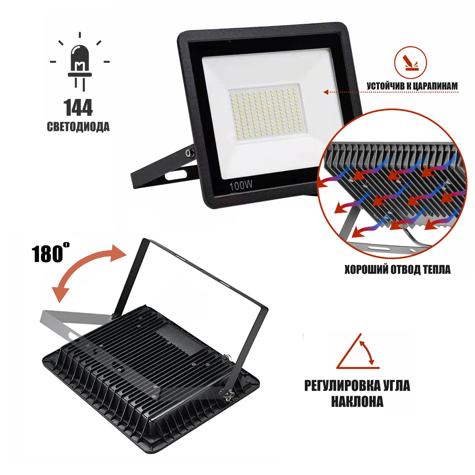 Светодиодный строительный прожектор 100 Вт на штативе JBH с сумками для переноски интересное: