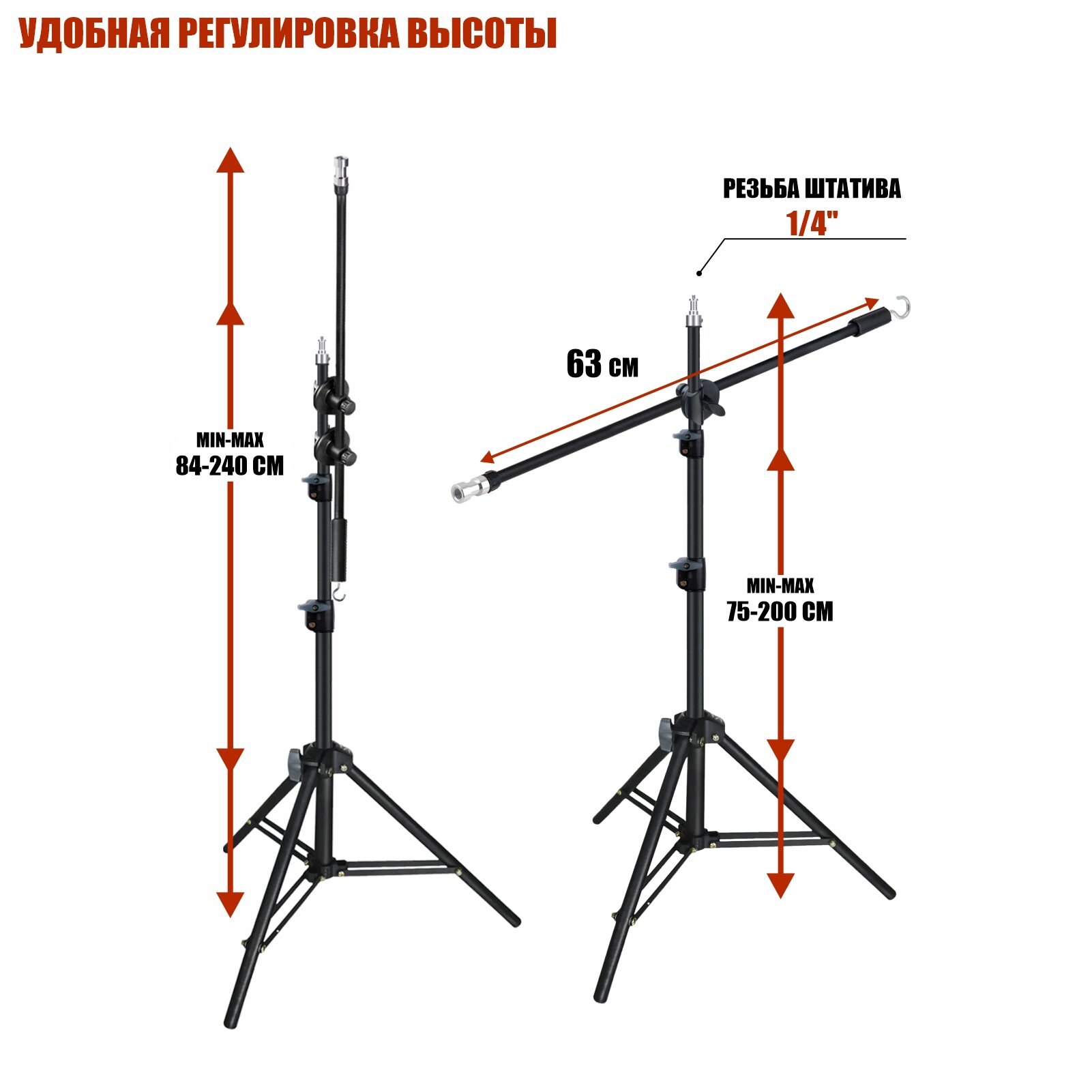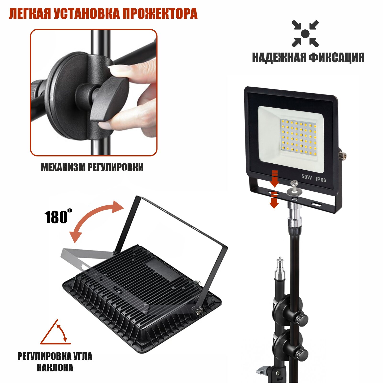 Прожектор светодиодный 50Вт на усиленном штативе LS240K-NP с возможностью наклона верхней секции интересное: