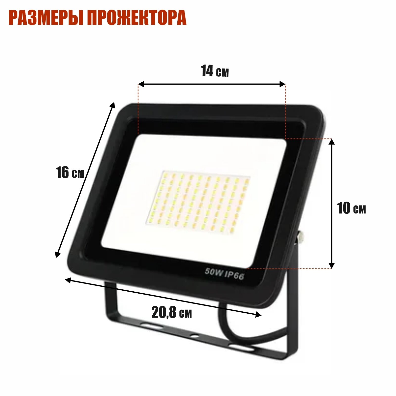 Прожектор LEDS POWER светодиодный (серия E027 пластик), IP65, 6000K, 50 Вт, светильник/фонарь уличный/внутренний