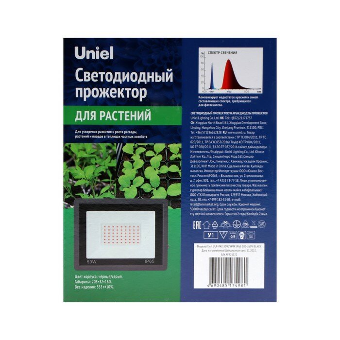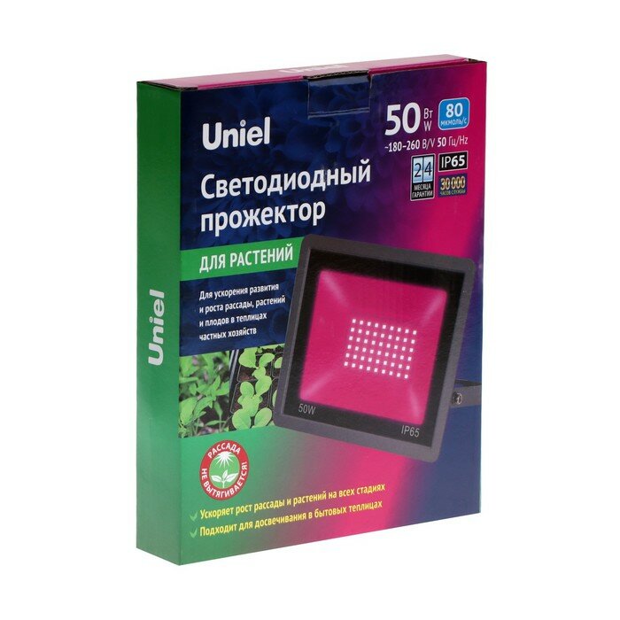 Прожектор светодиодный для растений Uniel ULF-P42-50W/SPBR IP65 180-260V Black UL-00010384 интересное: