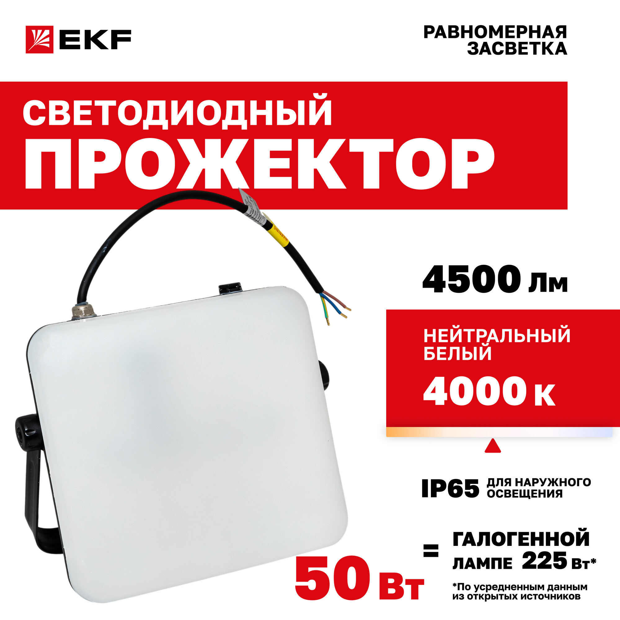Прожектор светодиодный EKF LUMA с равномерной засветкой СДО-4004 50Вт 4000К IP65 интересное: