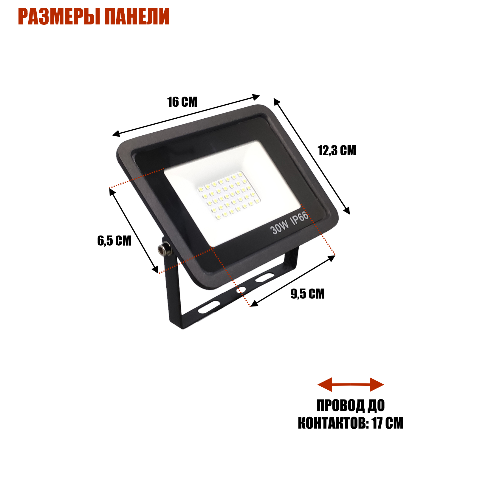 Светодиодный строительный прожектор 30 Вт с кабелем 1,5 м и клеммами на креплении зажиме 16-26 мм интересное: