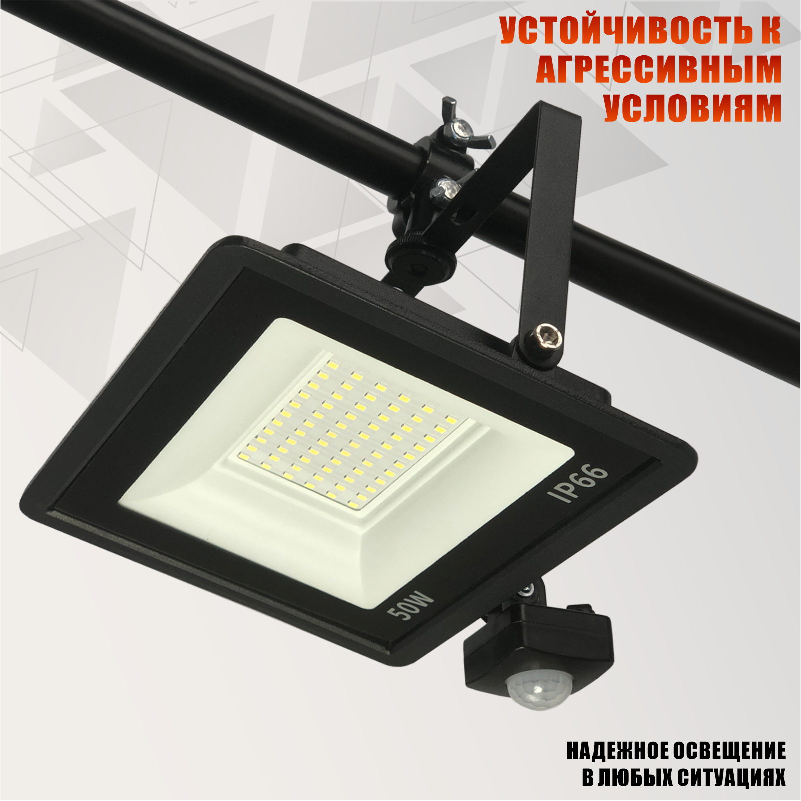 Купить Прожектор 50 Вт с датчиком движения на кронштейне с зажимом до 31 мм