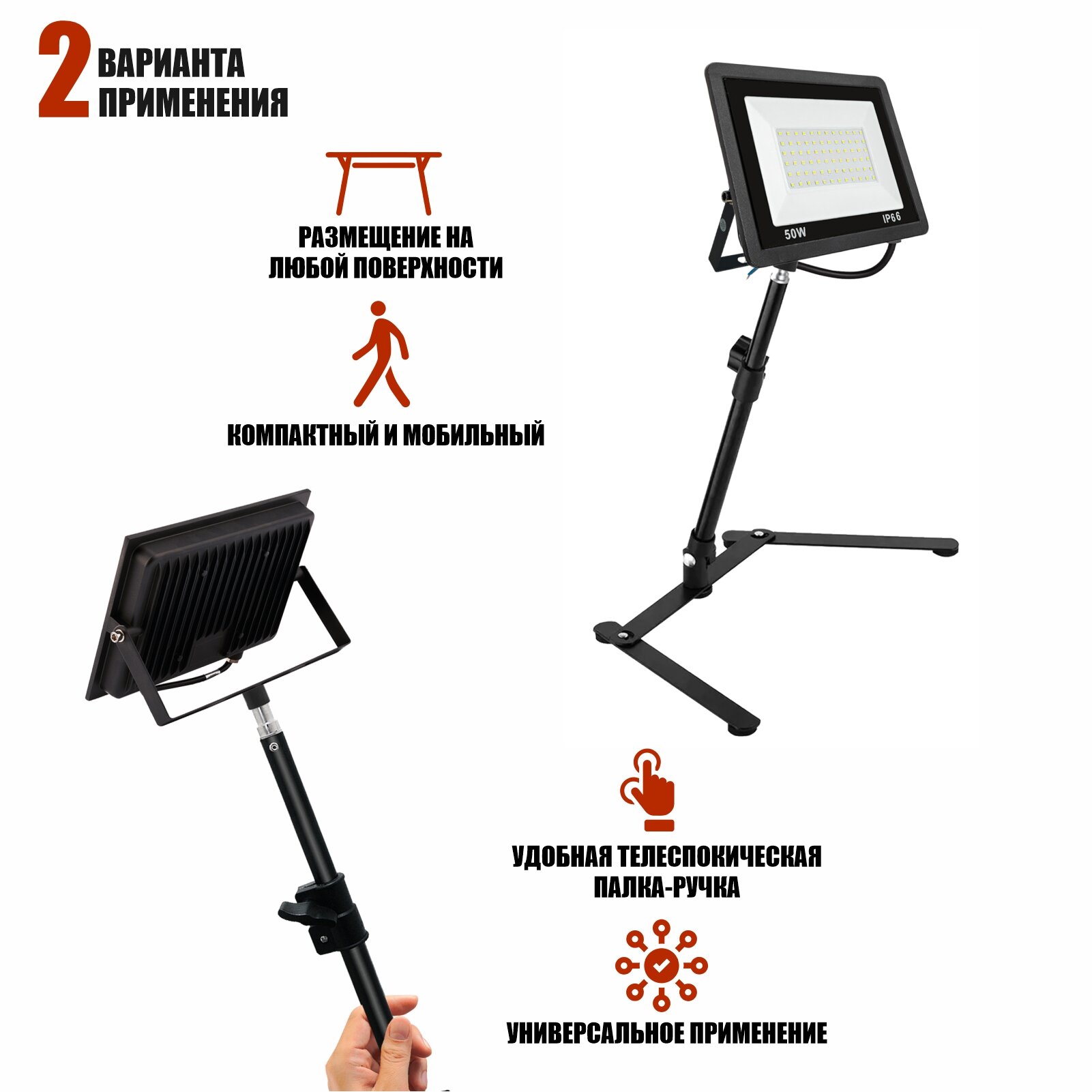 Светильник прожектор 50Вт на телескопической палке-ручке ECO и настольной подставке интересное: