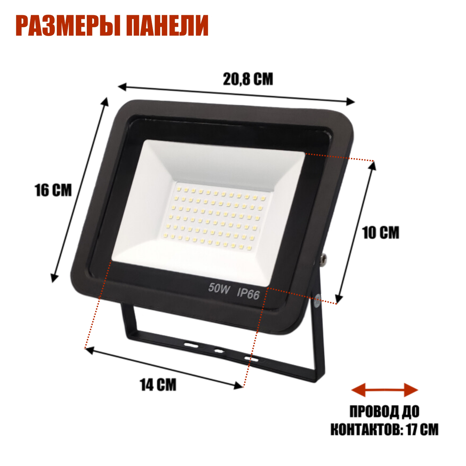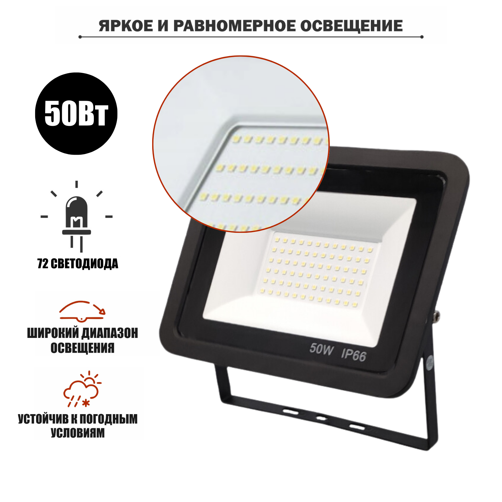 Прожектор LEDS POWER светодиодный (серия E027 пластик), IP65, 6000K, 50 Вт, светильник/фонарь уличный/внутренний