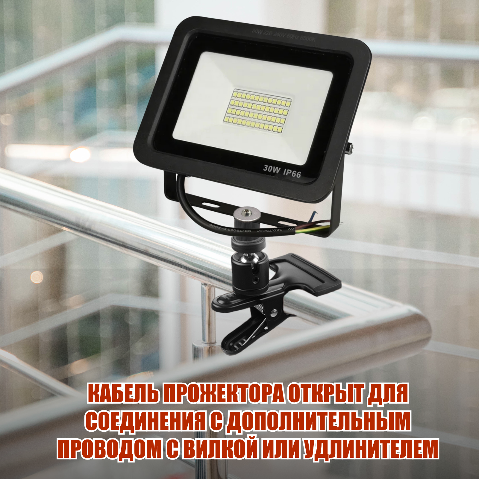 Светодиодный строительный прожектор 30 Вт на металлической прищепке PR1 для горизонтального и вертикального крепления интересное: