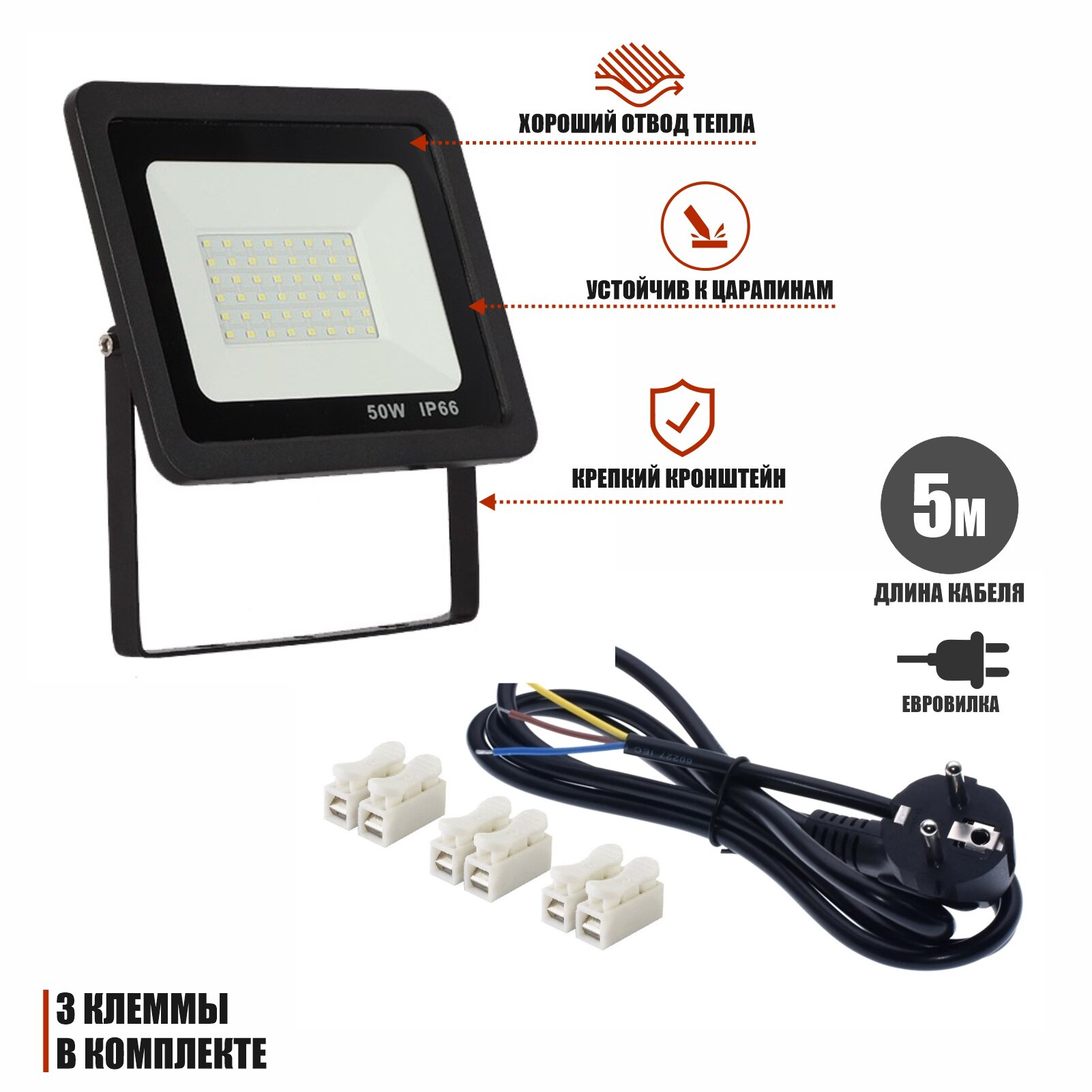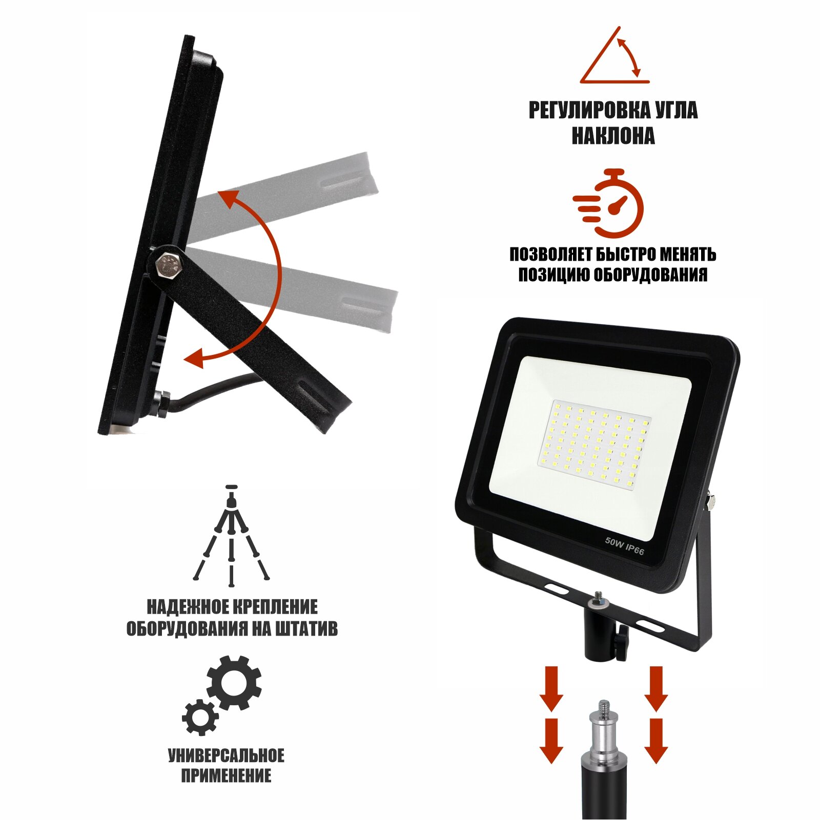 Светодиодный строительный прожектор 50 Вт с кабелем 5 м и клеммами на быстросъемном адаптере и штативе JBH интересное: