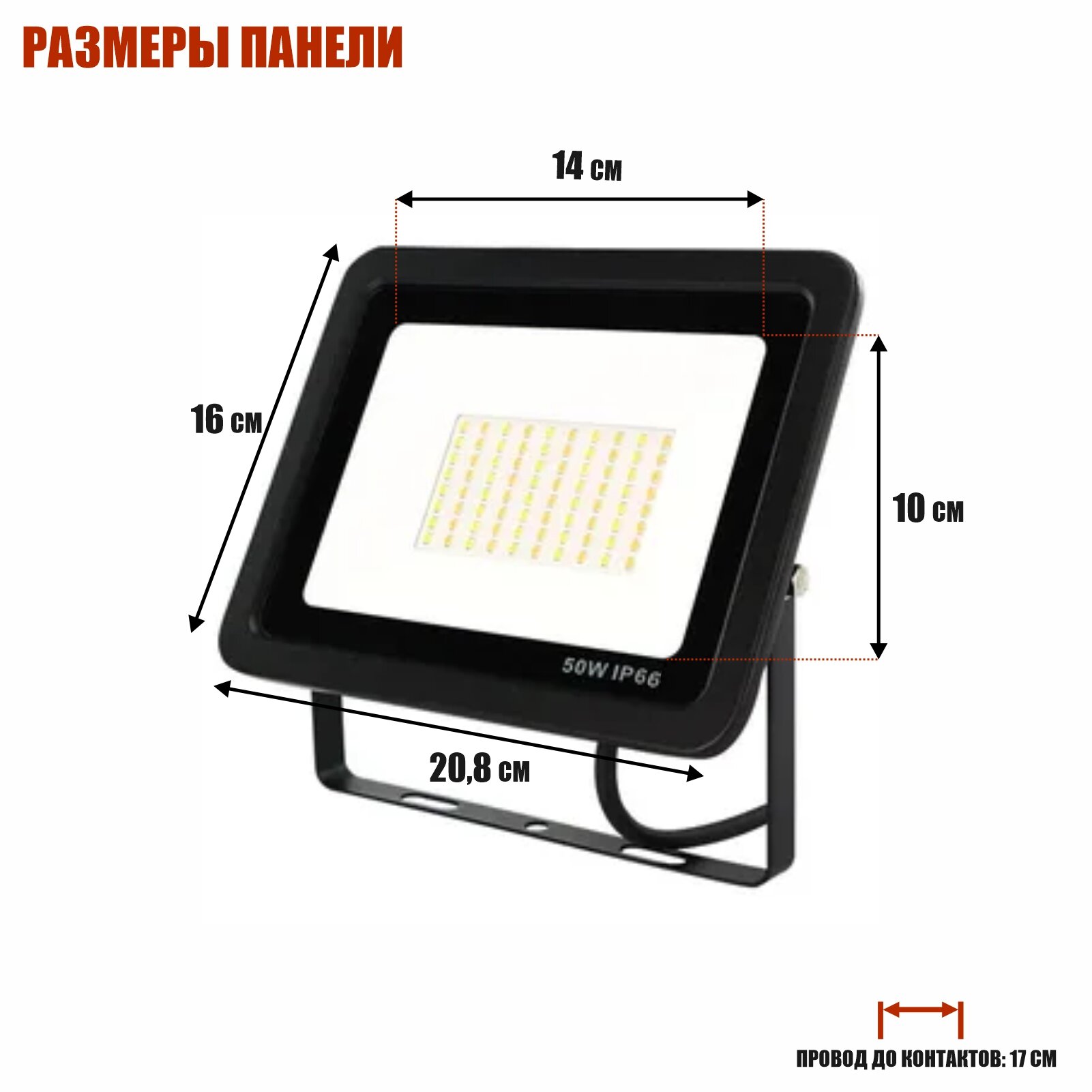 Прожектор LEDS POWER светодиодный (серия E027 пластик), IP65, 6000K, 50 Вт, светильник/фонарь уличный/внутренний