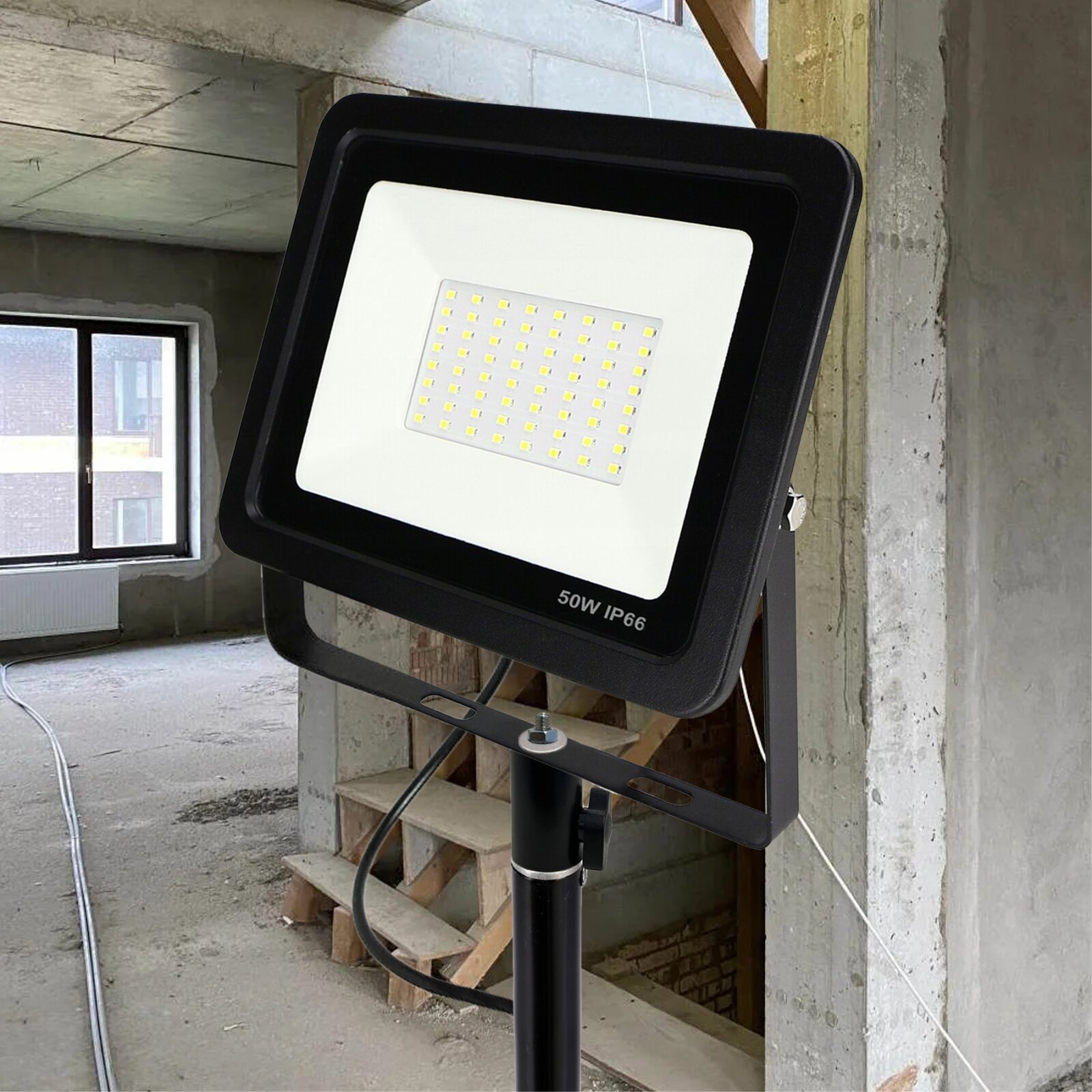 Купить Светодиодный строительный прожектор 50 Вт с кабелем 5 м и клеммами на быстросъемном адаптере и штативе JBH