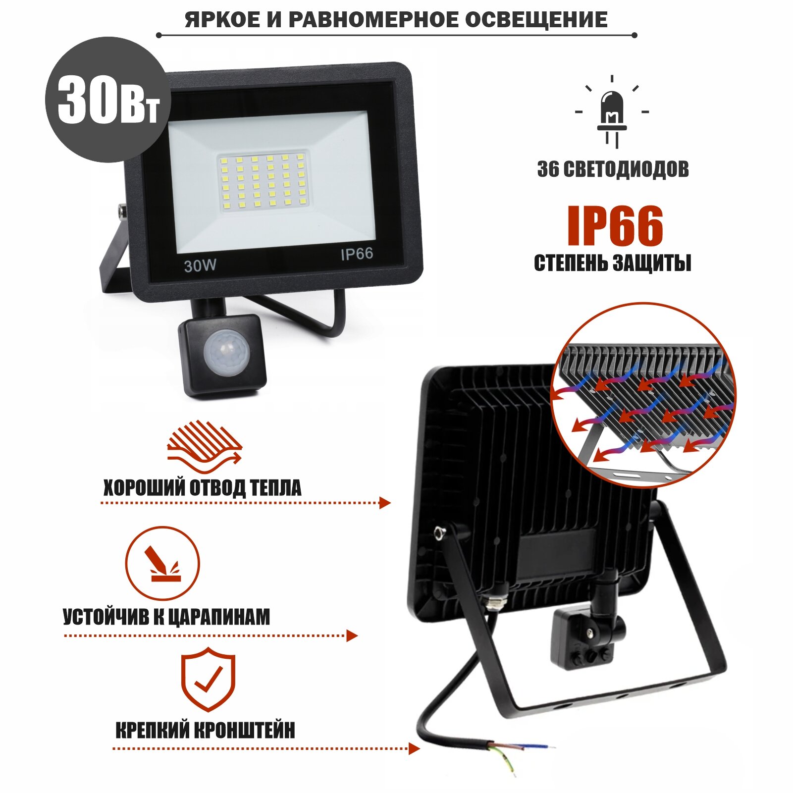 Светодиодный прожектор 30 Вт с датчиком движения интересное: