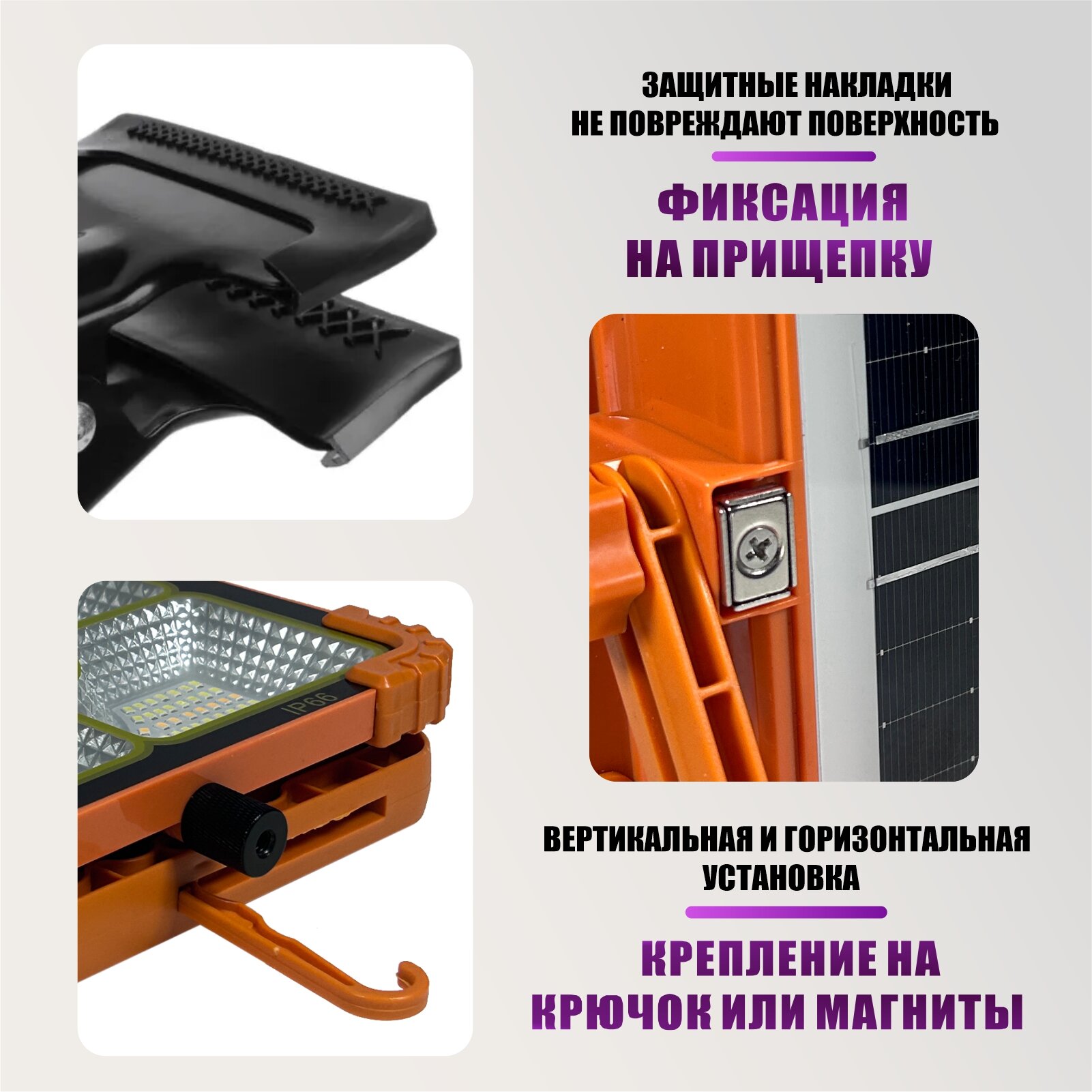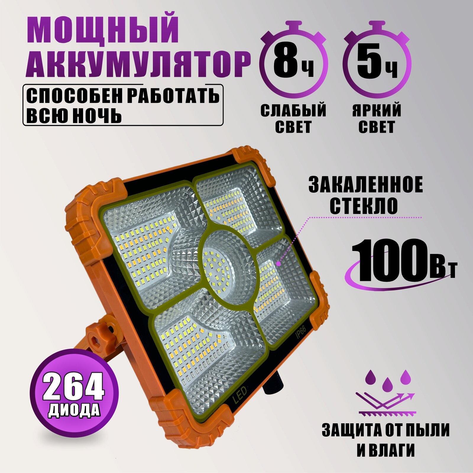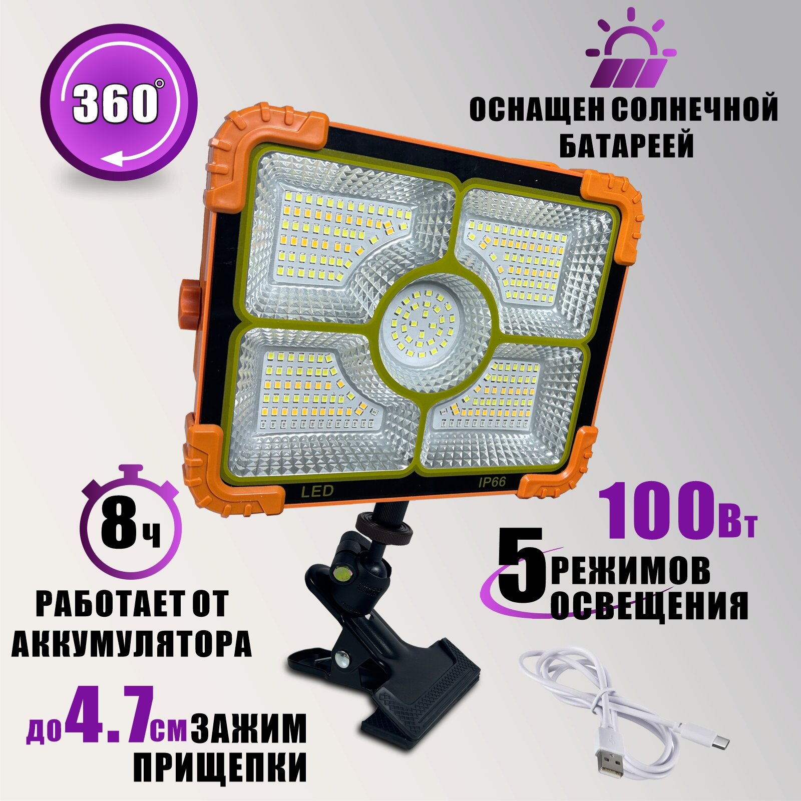 Прожектор уличный светильник аккумуляторный T-5 100 Вт на креплении прищепка PR1-SH интересное: