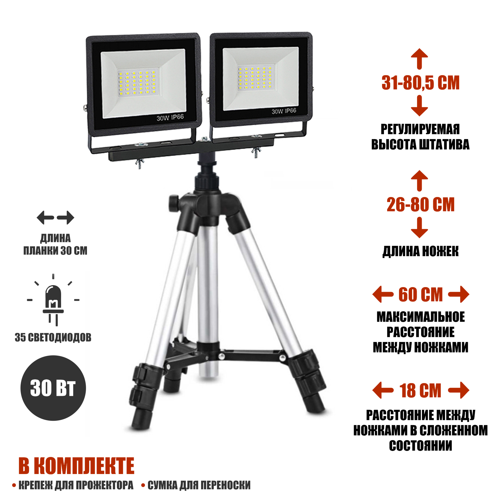 Прожекторы светодиодные 30Вт, 6500K, 2 шт, на штативе строительном 3110-PRJ-30PL2V интересное: