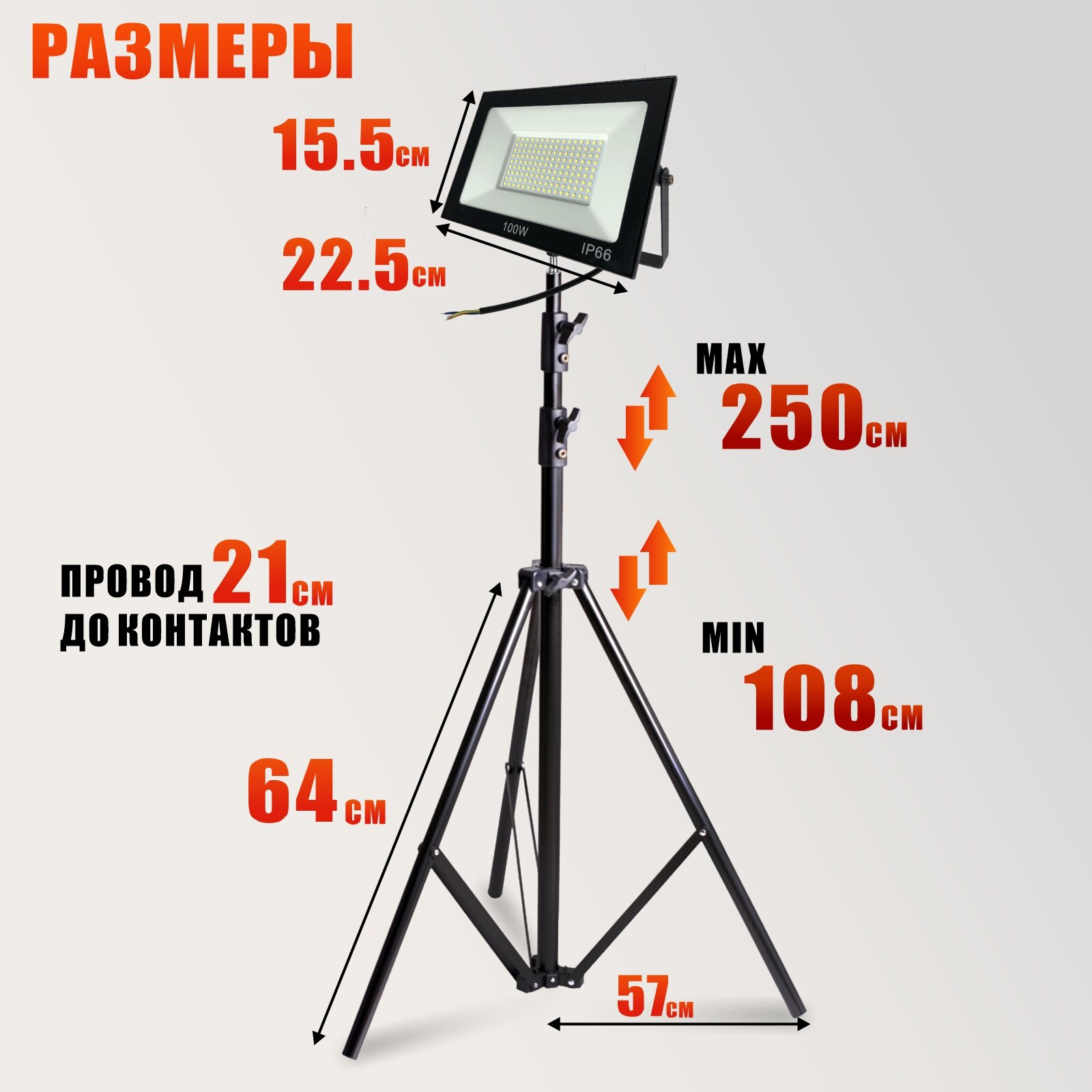 Светодиодный прожектор 100 Вт, 3000K, теплый свет на штативе BHS-PRJ интересное: