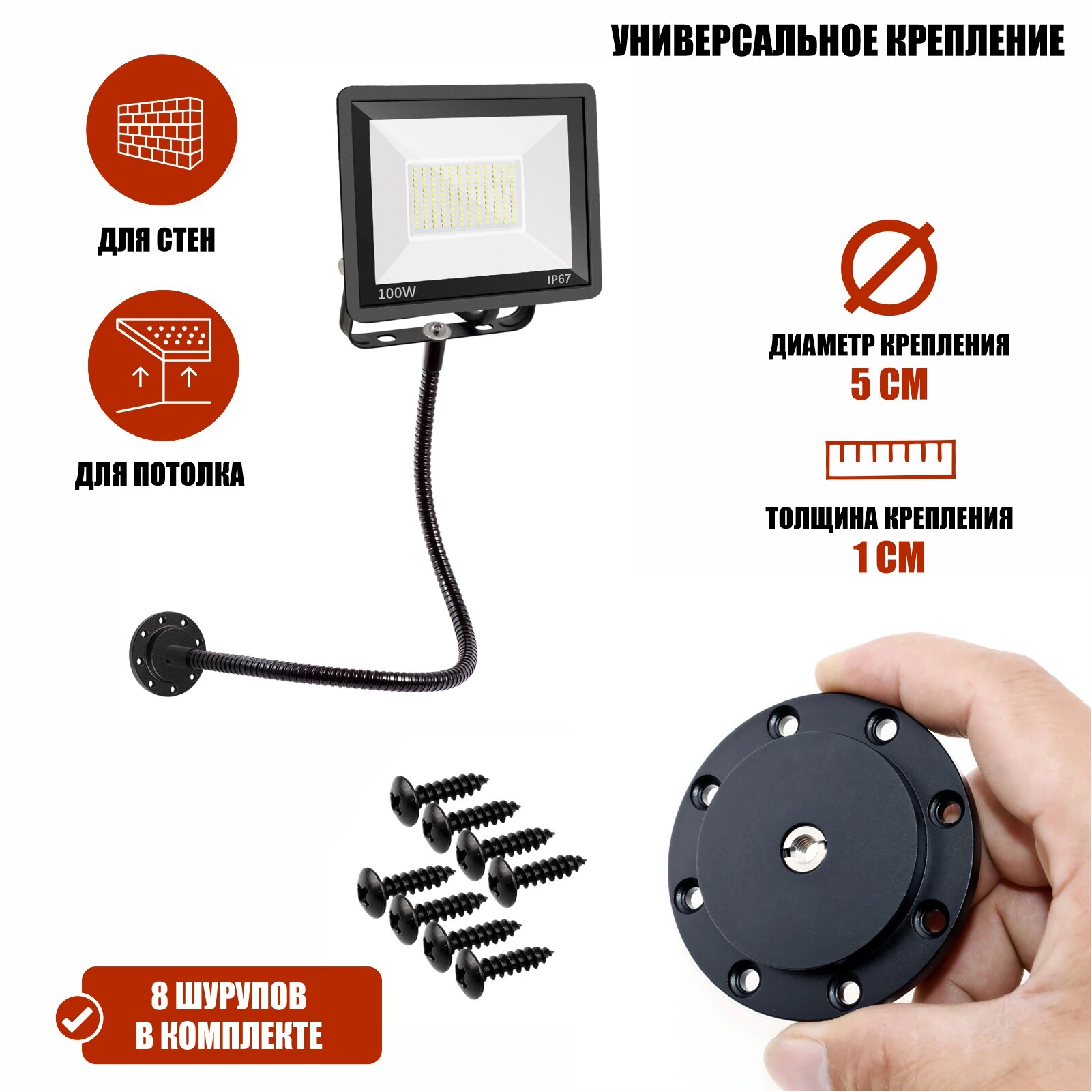 Прожектор светодиодный 100Вт на настенном гибком креплении FLAN-GDS интересное: