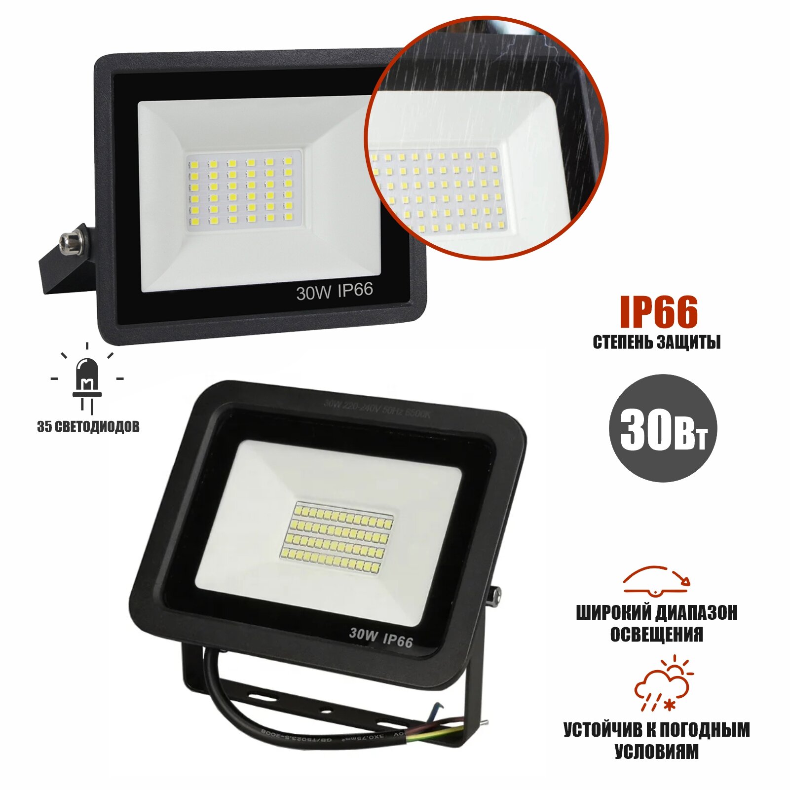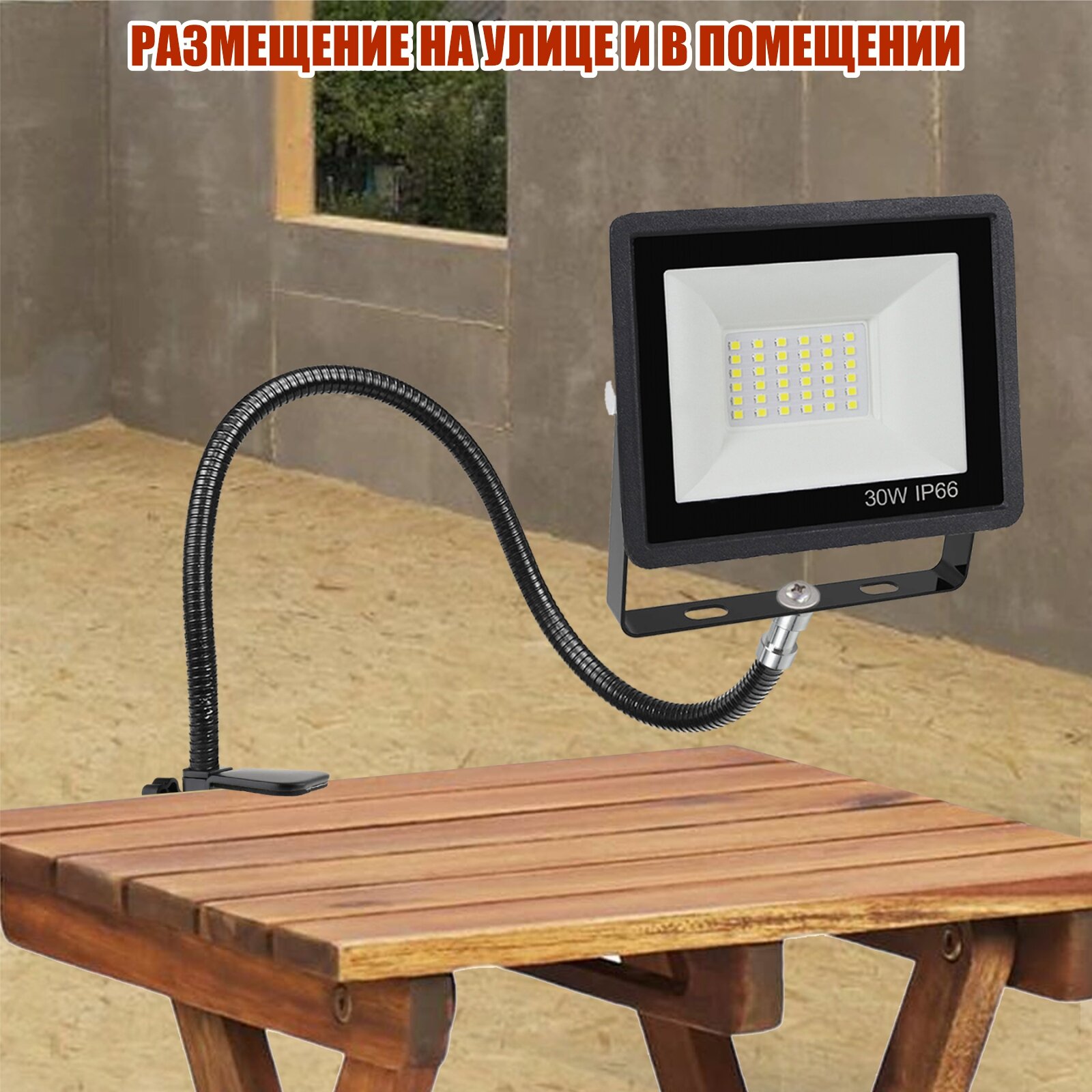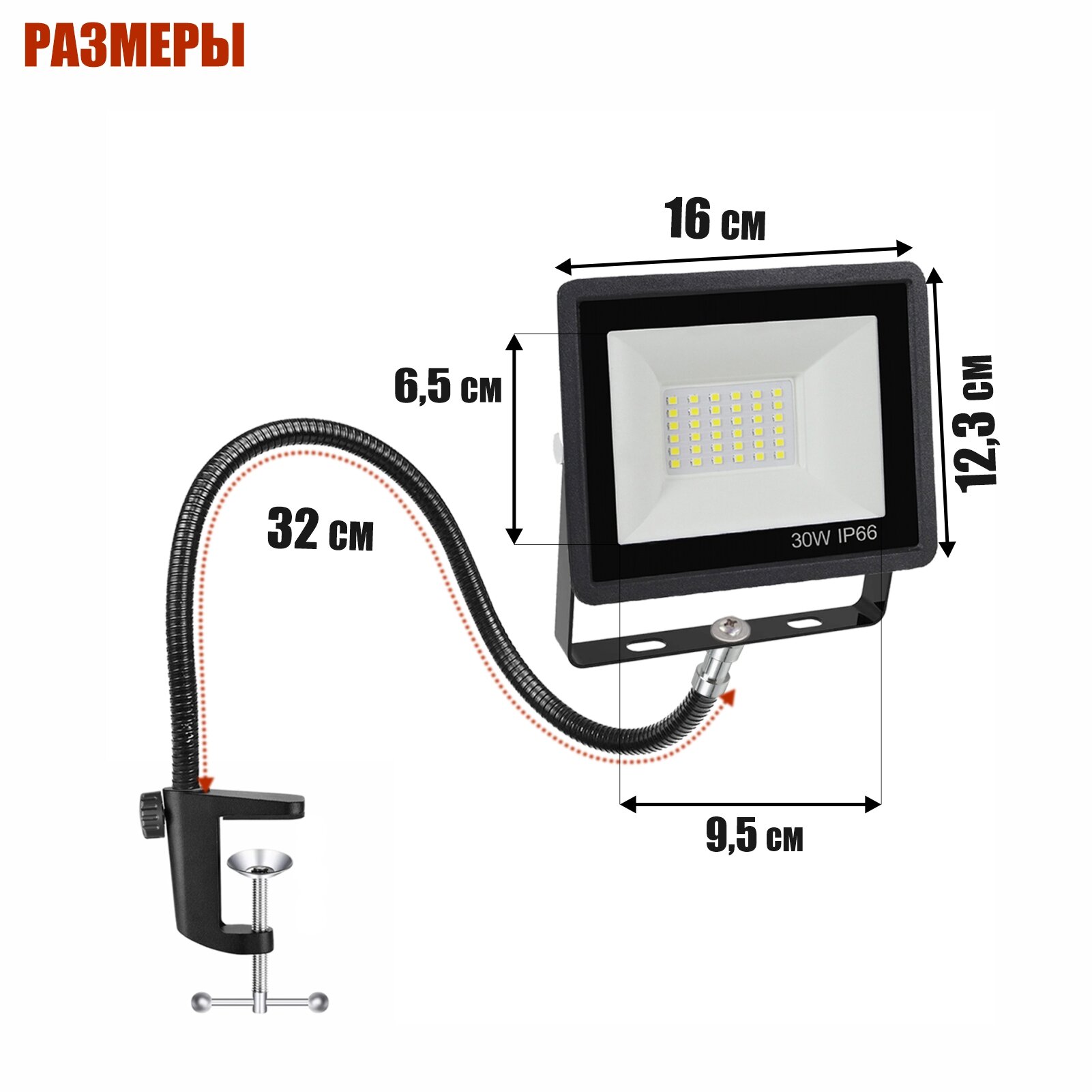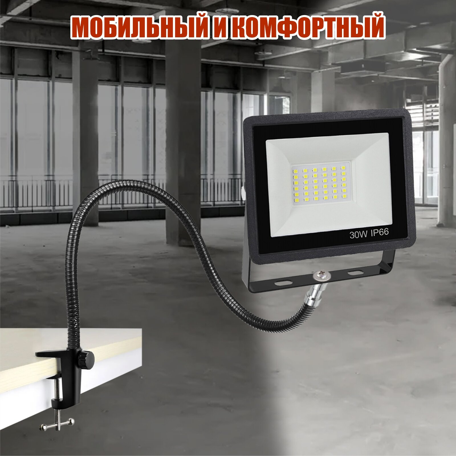 Прожектор светодиодный 30Вт на гибком креплении и усиленной струбцине GDSUS-38 с кабелем 1,5 м и клеммами интересное: