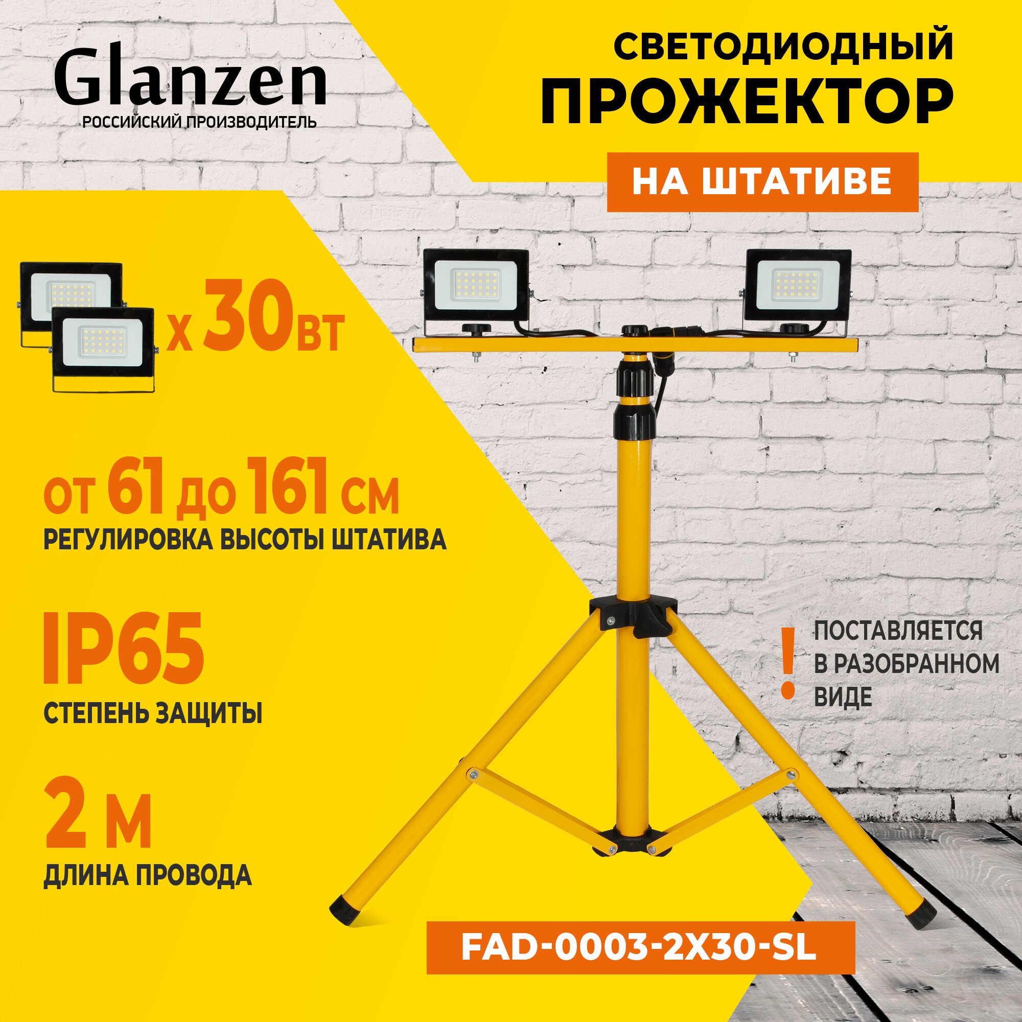 Светодиодный прожектор на штативе 2x30 Вт GLANZEN FAD-0003-2X30-SL для освещения строительных площадок интересное: