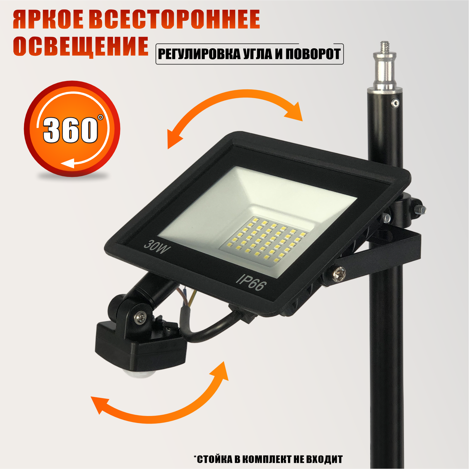 Прожектор 30 Вт с датчиком движения на кронштейне с зажимом до 31 мм интересное: