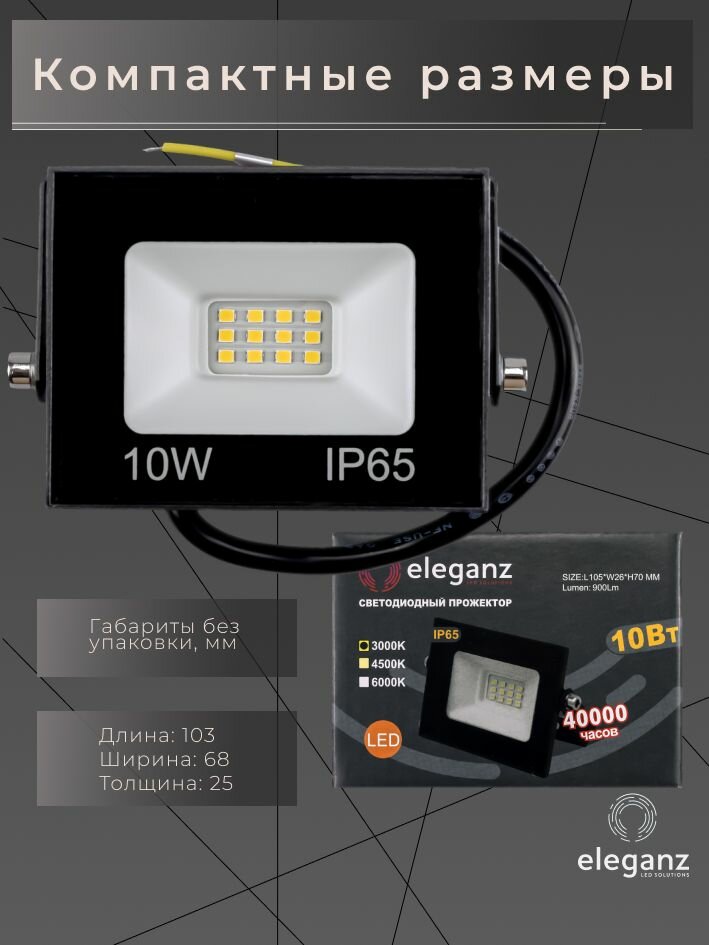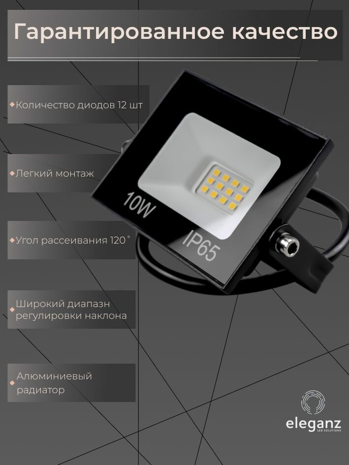 СохранитьПрожектор светодиодный уличный "Eleganz 10Вт" от сети 220В, IP65, алюминий, 950Лм, 3000К, 1 шт. интересное: