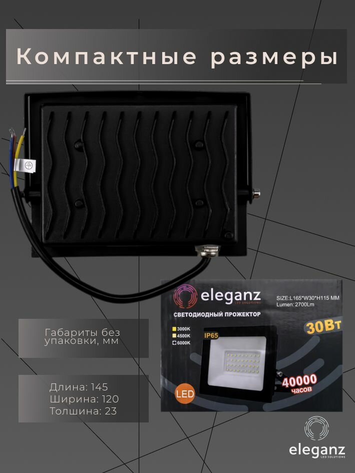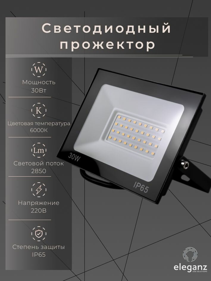 СохранитьПрожектор светодиодный уличный "Eleganz 30Вт" от сети 220В, IP65, алюминий, 2850Лм, 6000К, 1 шт. интересное: