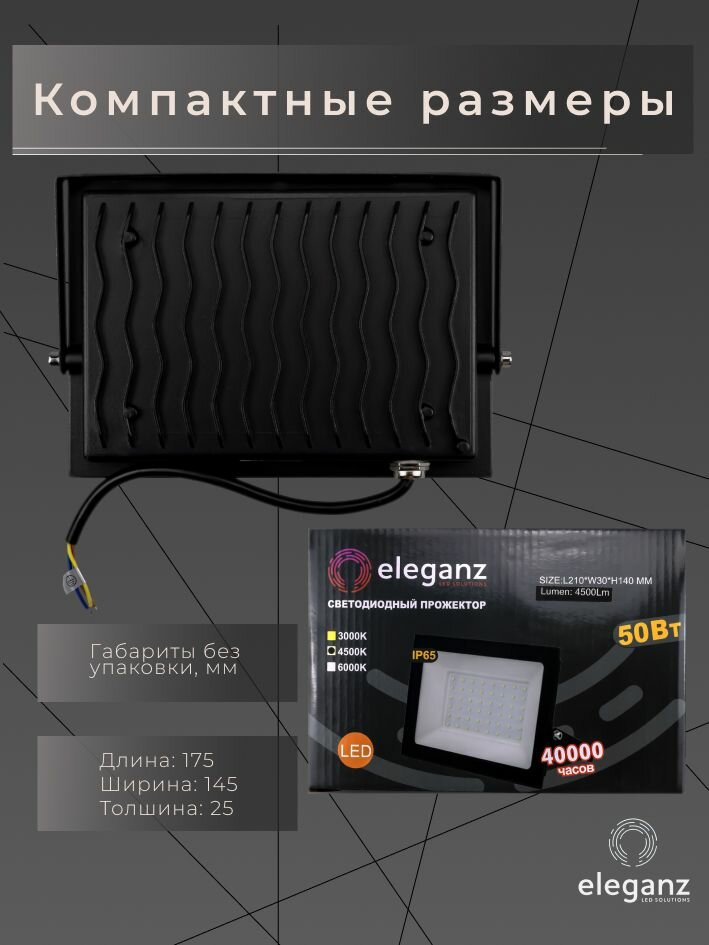 СохранитьПрожектор светодиодный уличный "Eleganz 50 Вт" от сети 220В, IP65, алюминий, 4750Лм, 4500К, 1 шт. интересное: