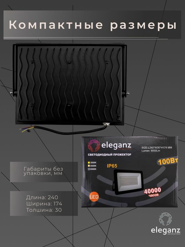 СохранитьПрожектор светодиодный уличный "Eleganz 100Вт" от сети 220В, IP65, алюминий, 9500Лм, 6000К, 1 шт. интересное: