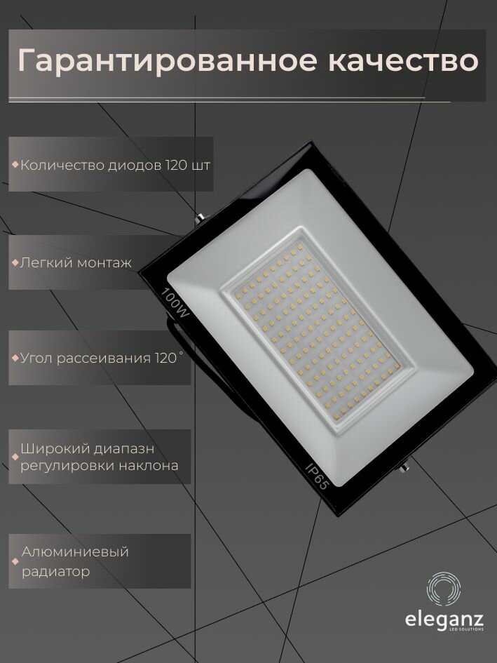 Прожектор светодиодный уличный "Eleganz 100Вт" от сети 220В, IP65, алюминий, 9500Лм, 3000К, 1 шт.