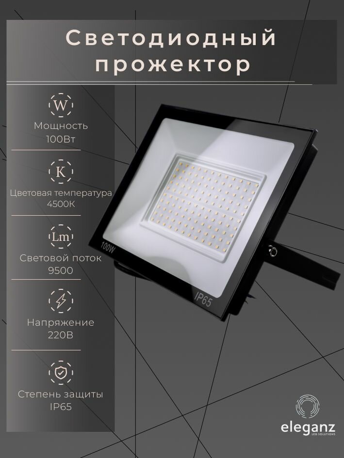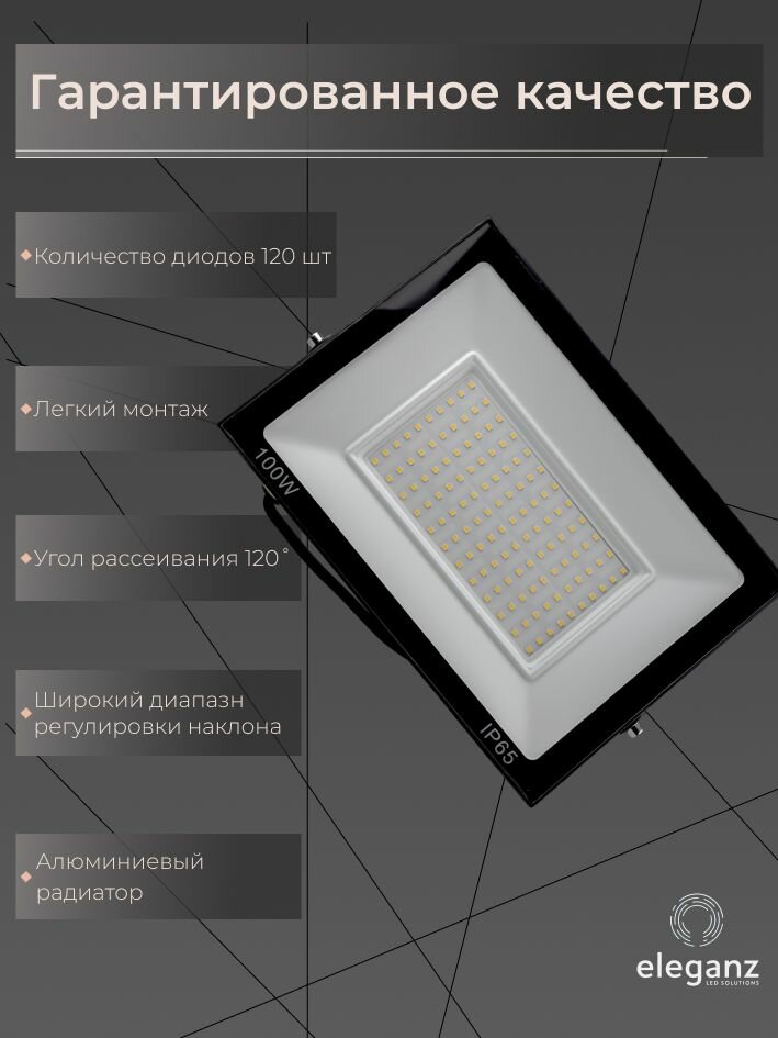 Прожектор светодиодный уличный "Eleganz 100Вт" от сети 220В, IP65, алюминий, 9500Лм, 4500К, 1 шт. интересное: