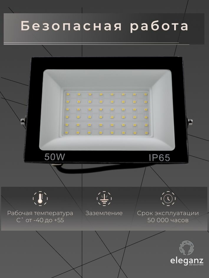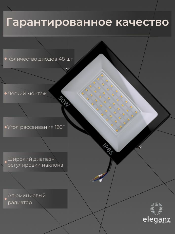 Прожектор светодиодный уличный "Eleganz 50 Вт" от сети 220В, IP65, алюминий, 4750Лм, 6000К, 1 шт.