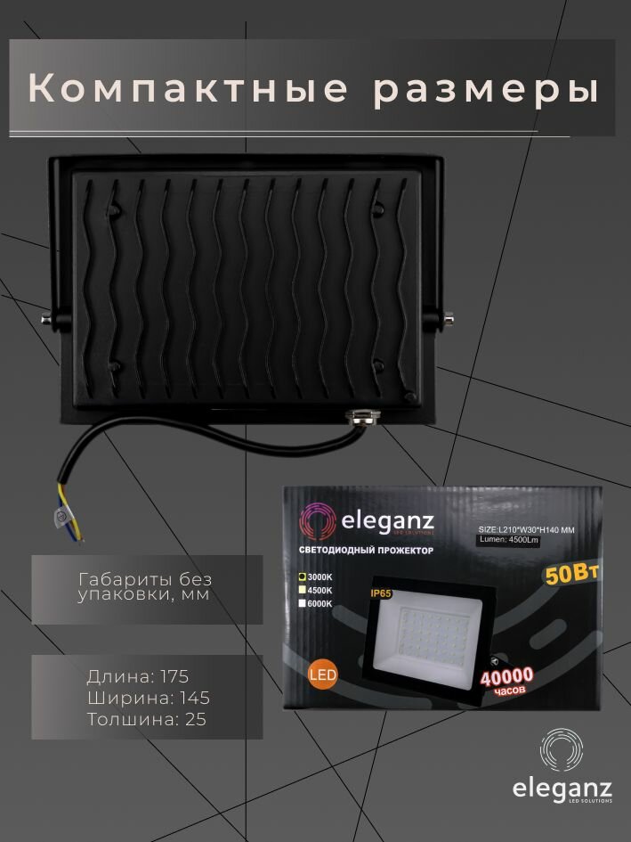 СохранитьПрожектор светодиодный уличный "Eleganz 50 Вт" от сети 220В, IP65, алюминий, 4750Лм, 3000К, 1 шт. интересное: