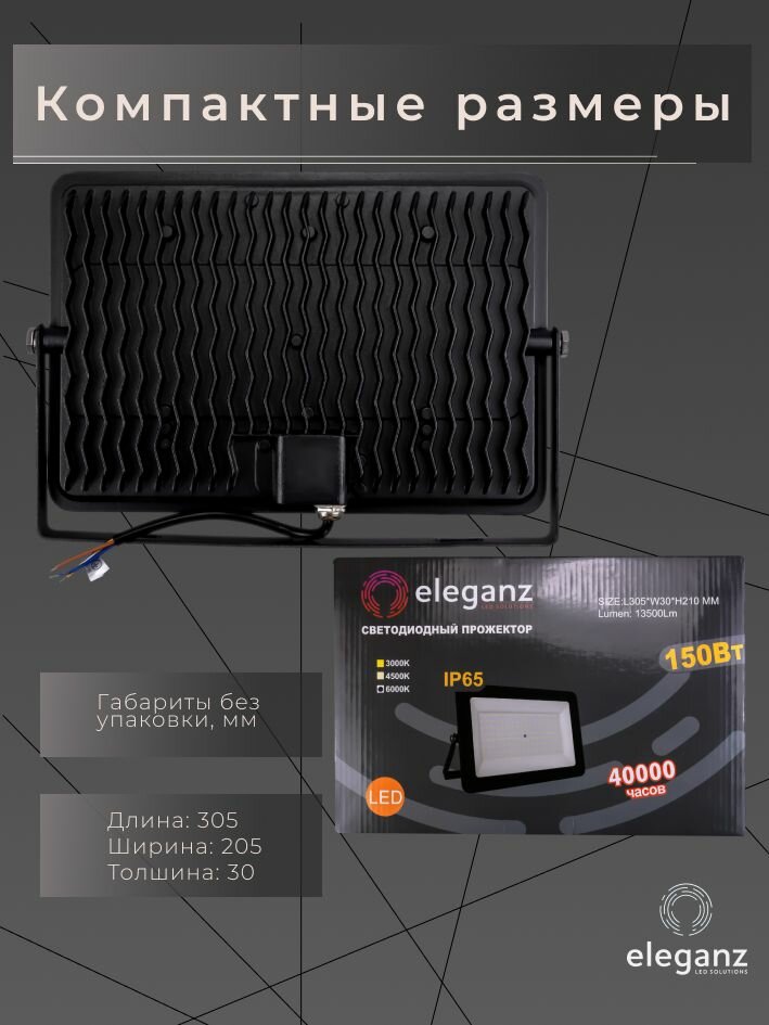 Ниже Вы можете прочитать отзывы на Прожектор светодиодный уличный "Eleganz 150 Вт" от сети 220В, IP65, алюминий, 14250Лм, 6000К, 1 шт., ознакомится с подробными характеристиками, посмотреть интересные обзоры и фотографии на Прожектор светодиодный уличный "Eleganz 150 Вт" от сети 220В, IP65, алюминий, 14250Лм, 6000К, 1 шт..
