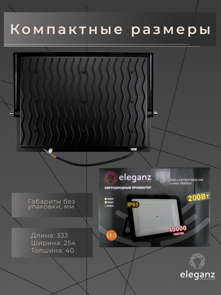 Купить Прожектор светодиодный уличный "Eleganz 200Вт" от сети 220В, IP65, алюминий, 19000Лм, 6000К, 1 шт.