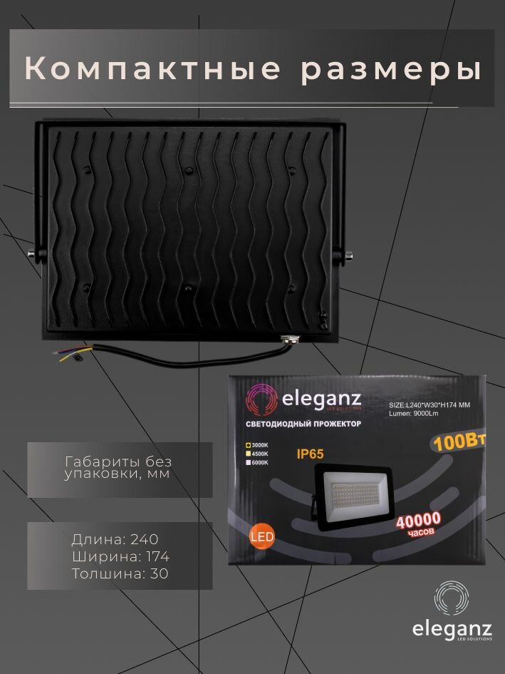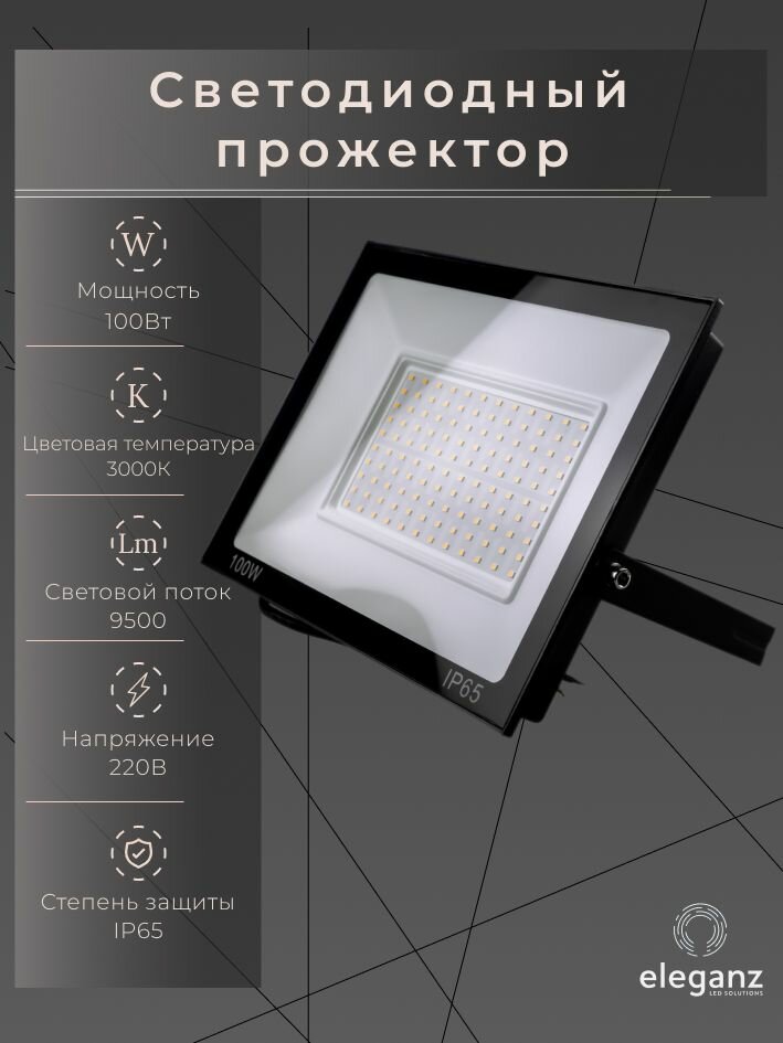 СохранитьПрожектор светодиодный уличный "Eleganz 100Вт" от сети 220В, IP65, алюминий, 9500Лм, 3000К, 1 шт. интересное: