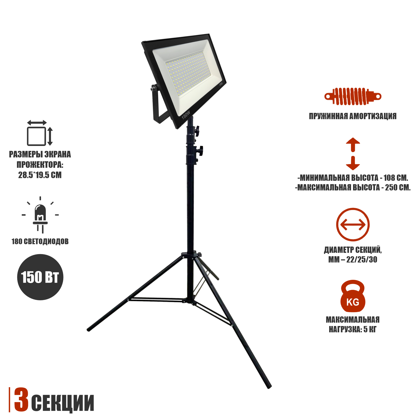 Прожектор светодиодный 150 Вт на штативе строительном BHS-PRJ интересное:
