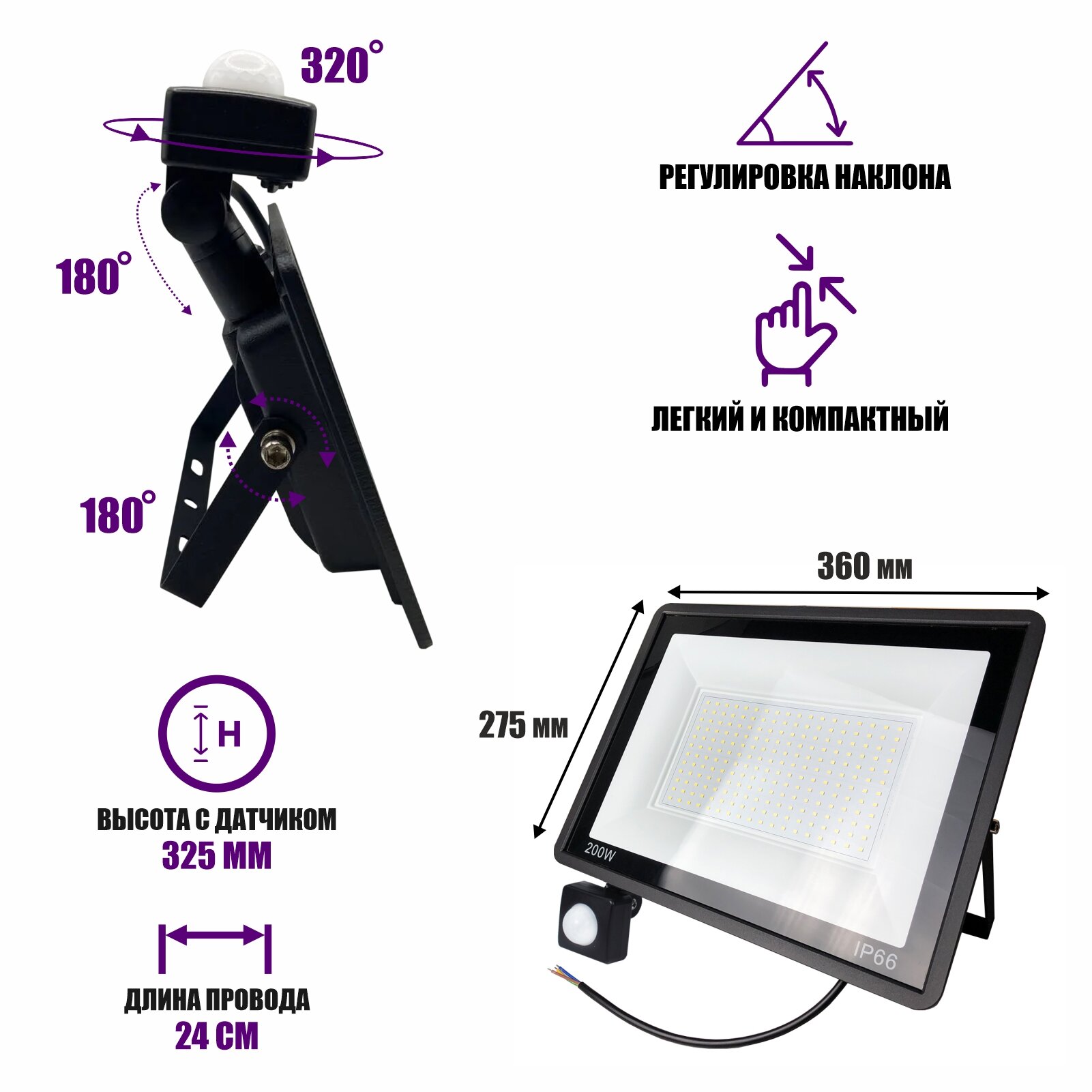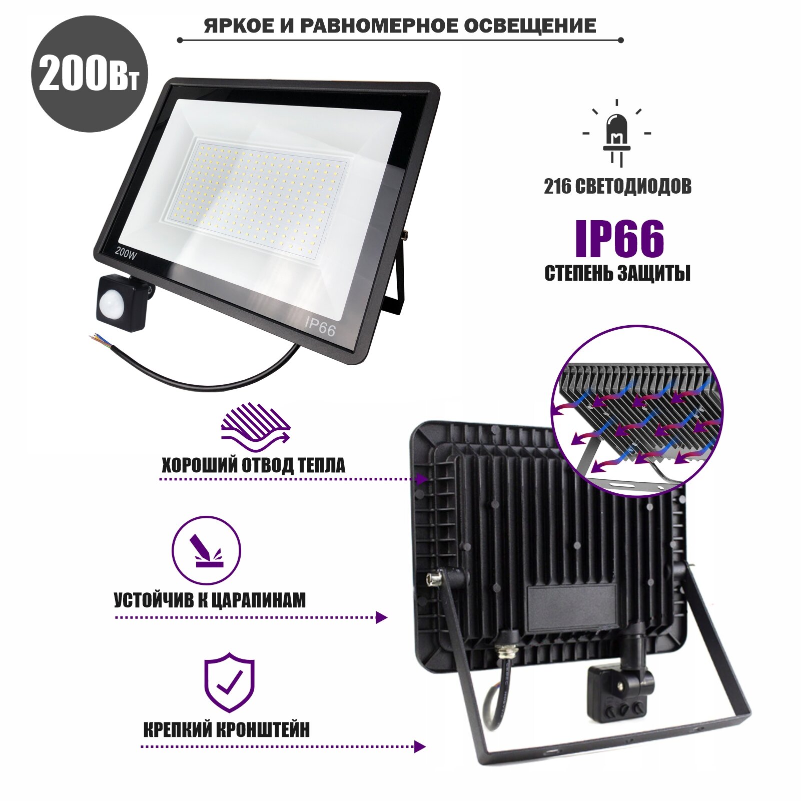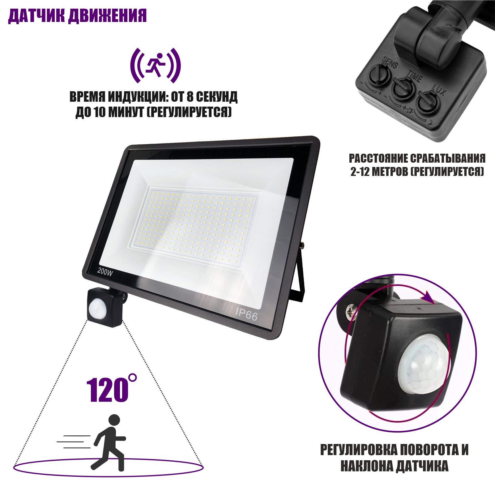 Светодиодный прожектор 200 Вт с датчиком движения интересное: