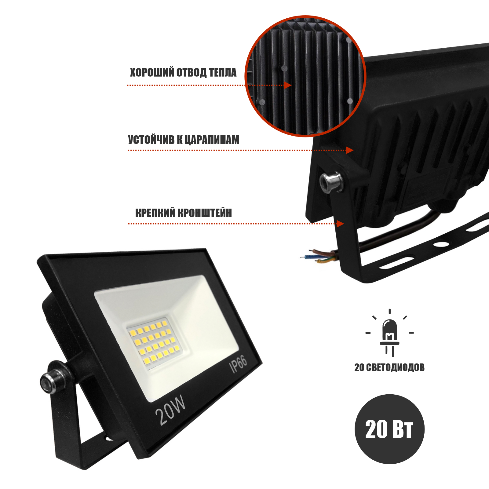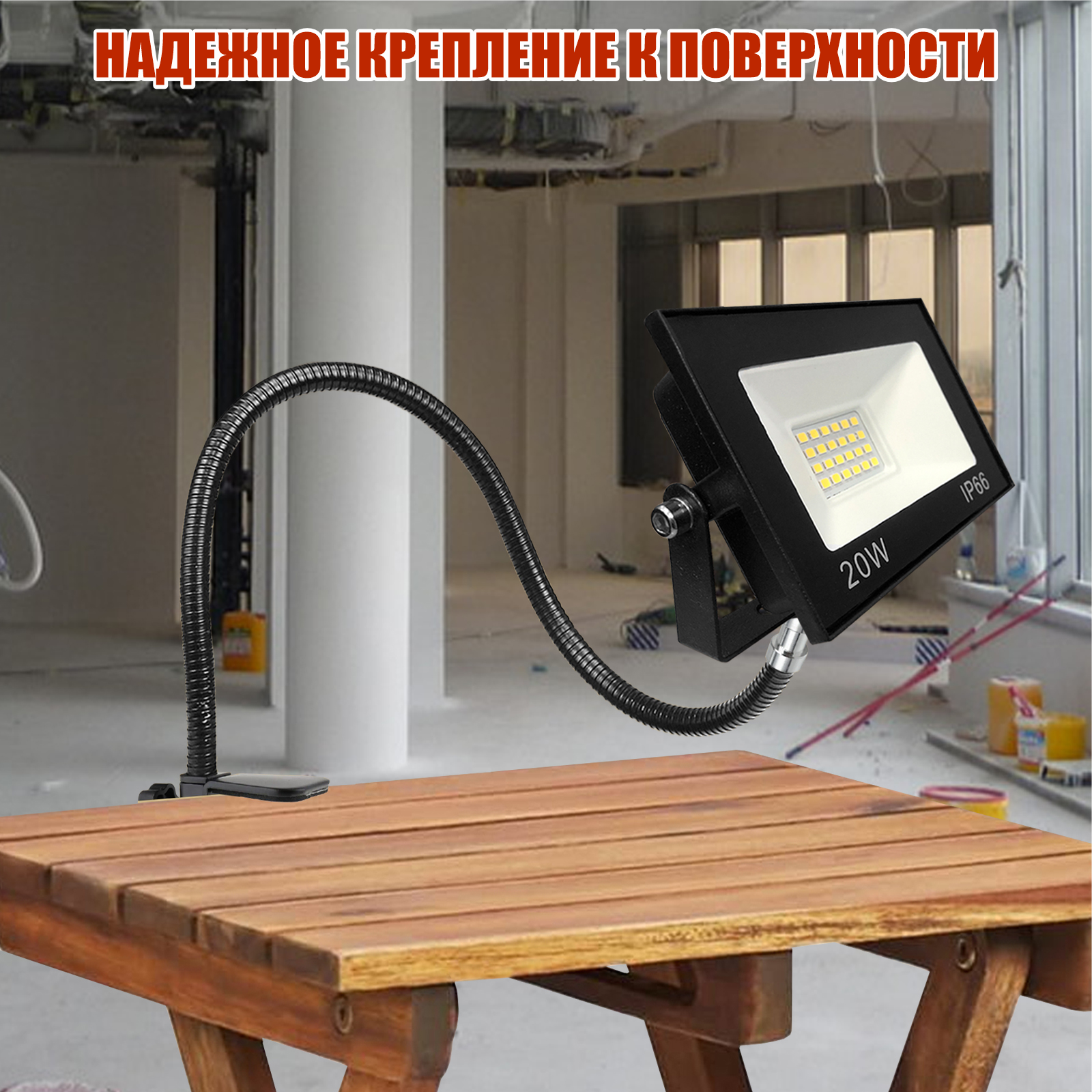 Прожектор светодиодный 20Вт на гибком креплении и усиленной струбцине GDSUS-38 с кабелем 1,5 м и клеммами интересное: