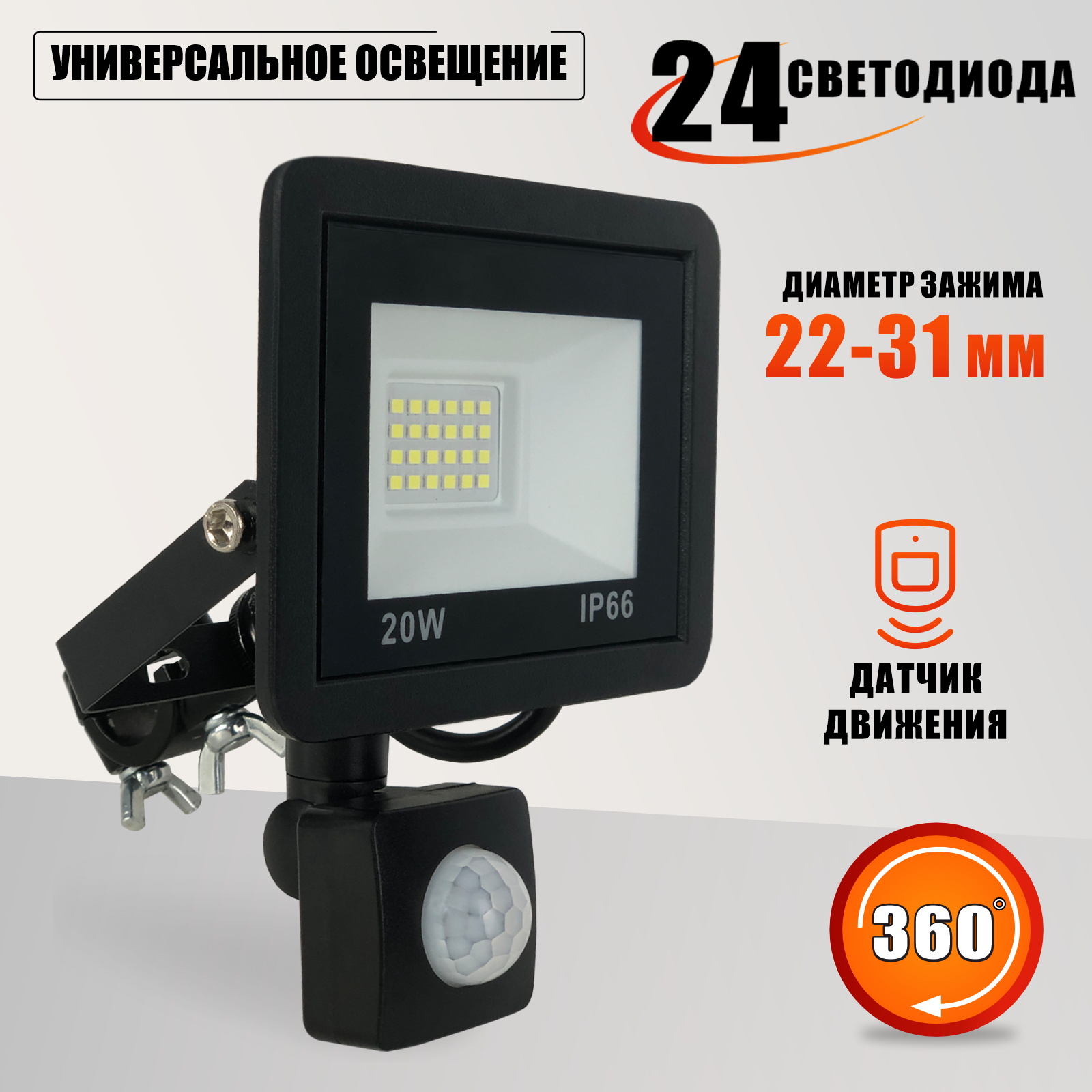 Прожектор 20 Вт с датчиком движения на кронштейне с зажимом до 31 мм интересное: