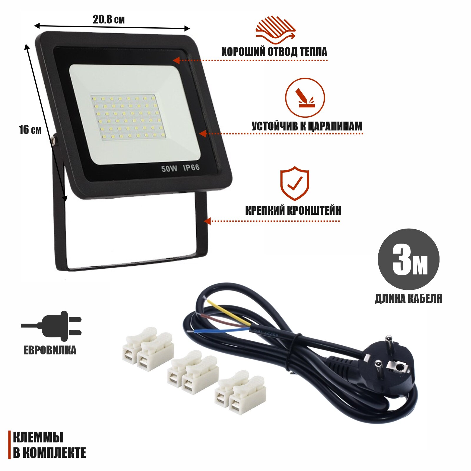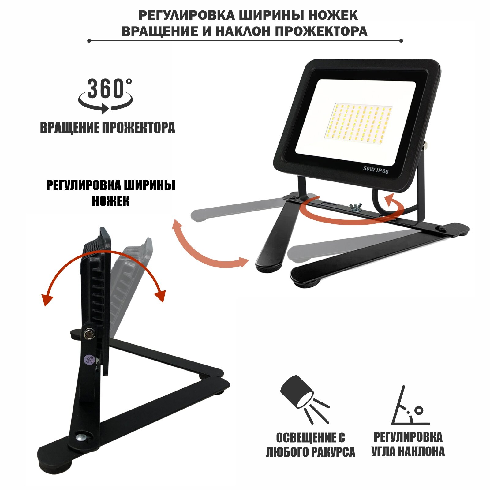 Прожектор светодиодный 50Вт на настольной подставке с кабелем 3м и клеммами интересное: