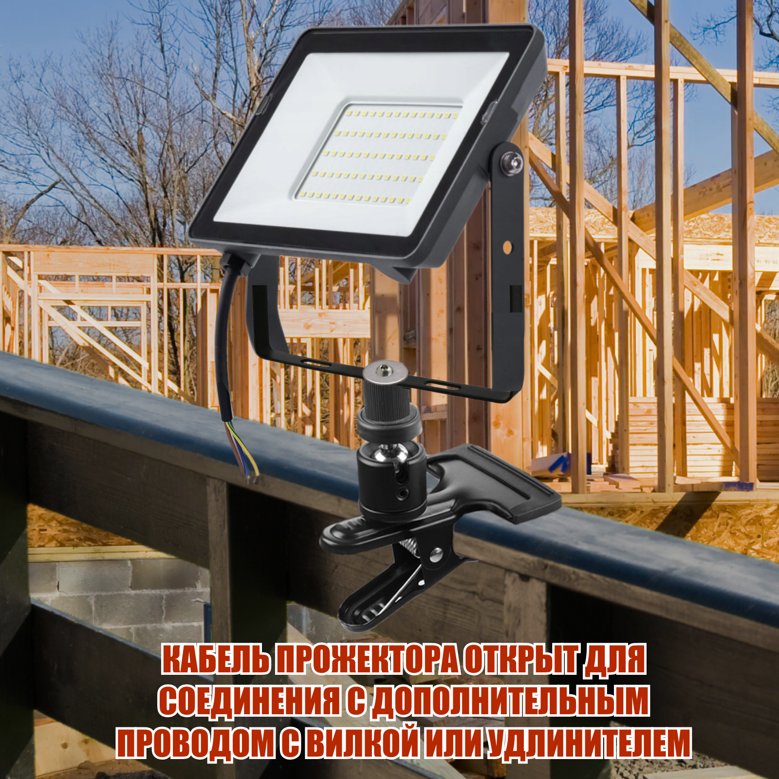 Купить Светодиодный строительный прожектор 50 Вт на металлической прищепке PR1 для горизонтального и вертикального крепления
