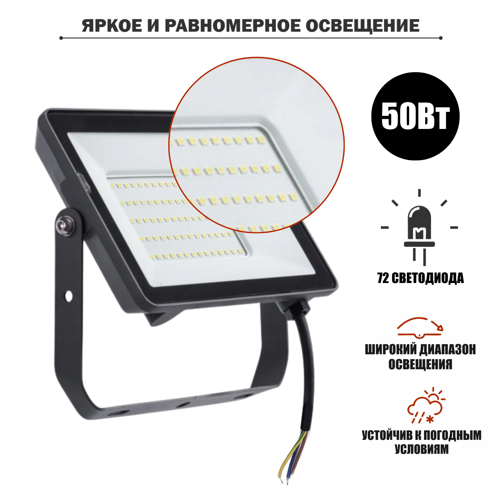 Прожектор LEDS POWER светодиодный (серия E027 пластик), IP65, 6000K, 50 Вт, светильник/фонарь уличный/внутренний