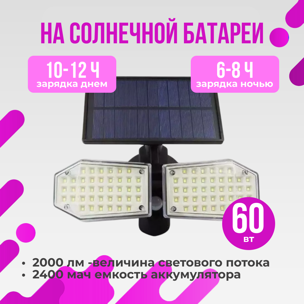 Купить Прожектор, на солнечной батарее, с двумя поворотными панелями