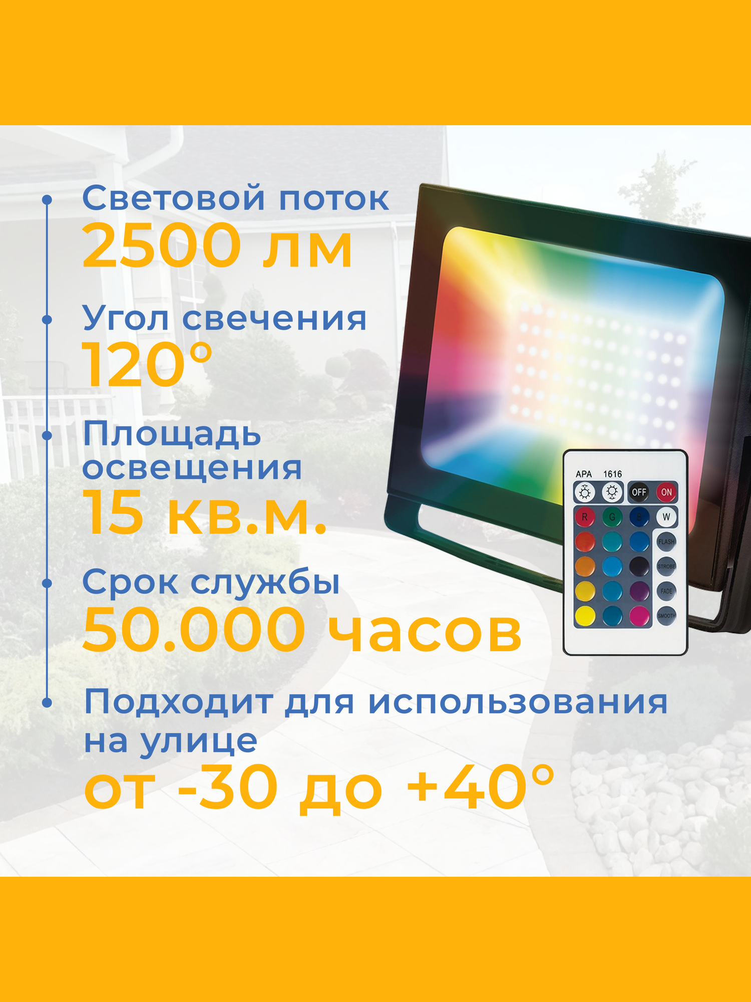 Прожектор светодиодный уличный Uniel, 20 Вт, 2500 К, IP65, пульт ДУ интересное: