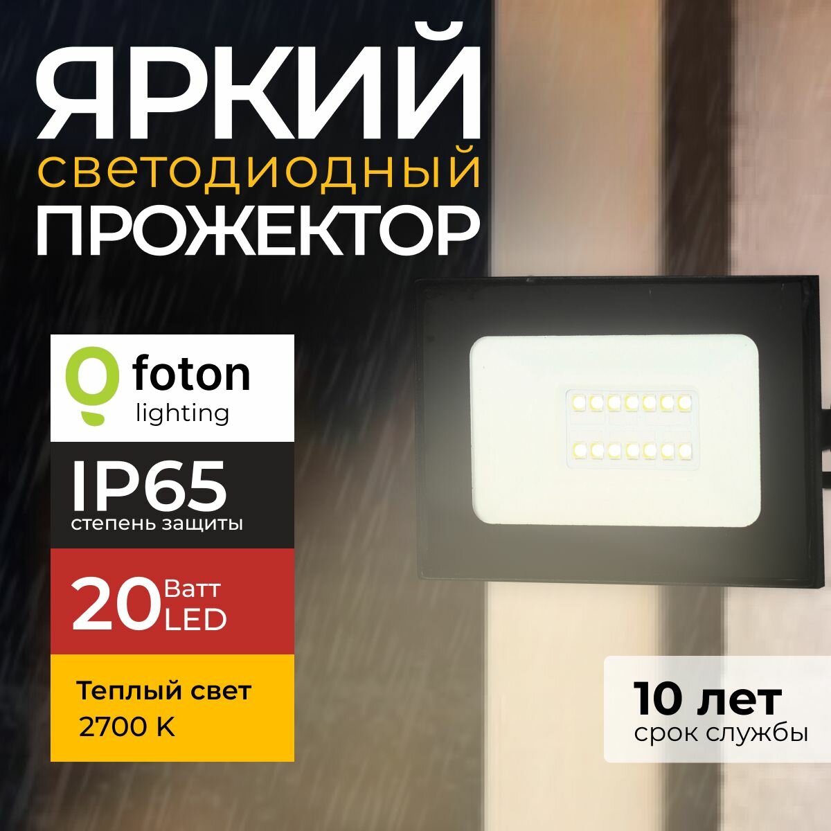 Прожектор светодиодный уличный FL-LED Light-PAD 20 Ватт 2700K теплый свет, фонарь для освещения, черный корпус 2000лм IP65 Foton Lighting, набор 1шт. интересное:
