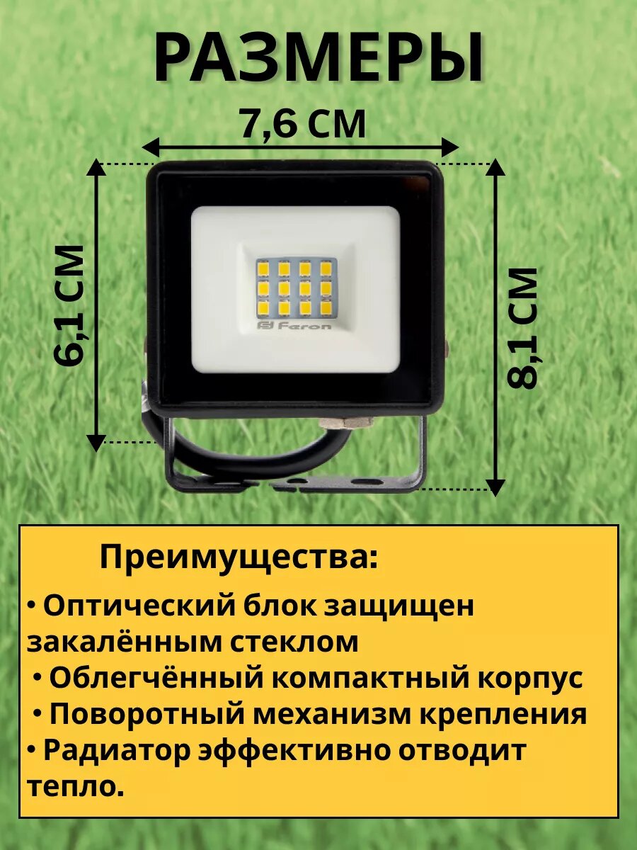 Светодиодный прожектор Feron LL-918, 10 Вт, IP65, уличный, 6400К, белый