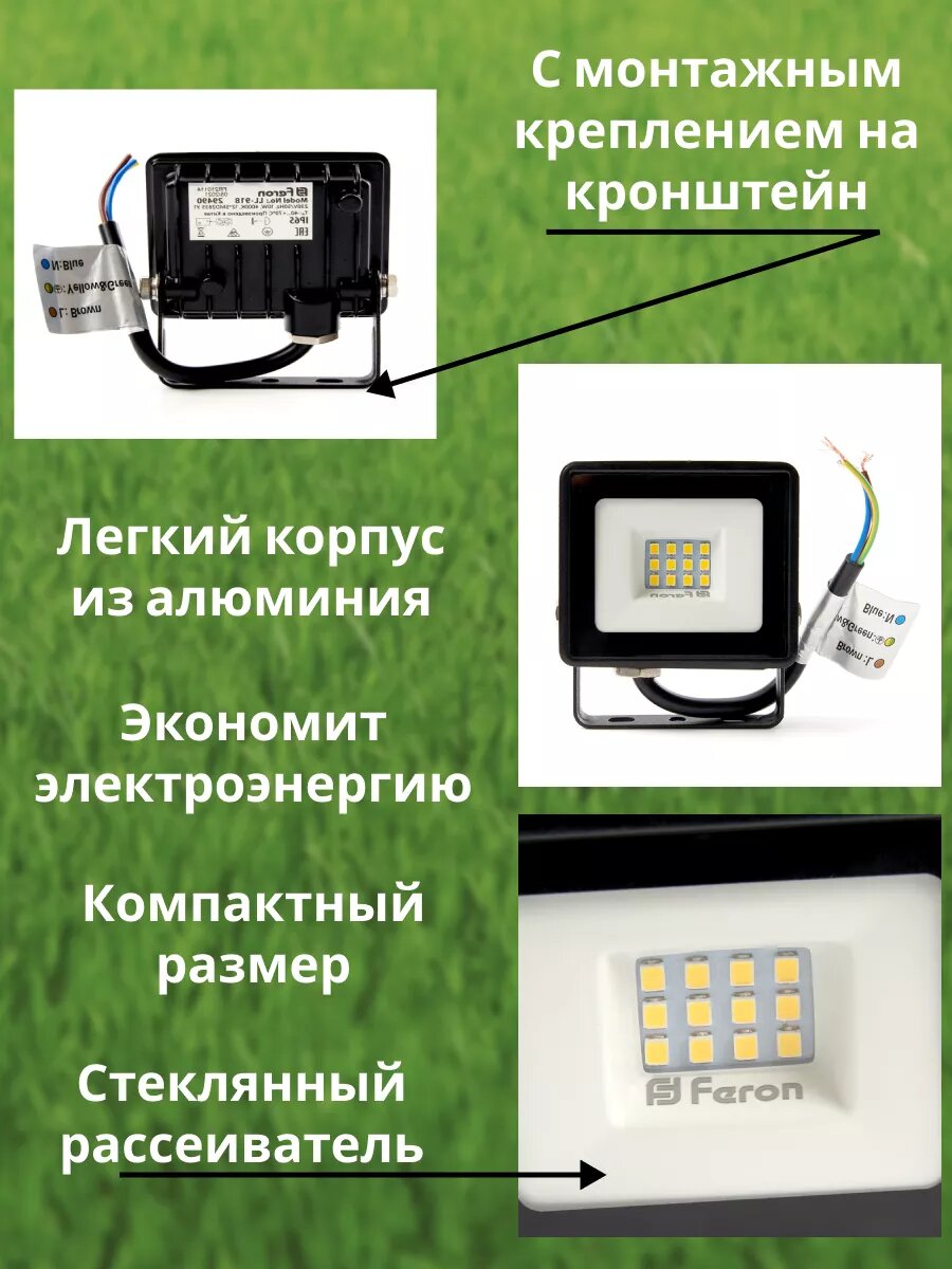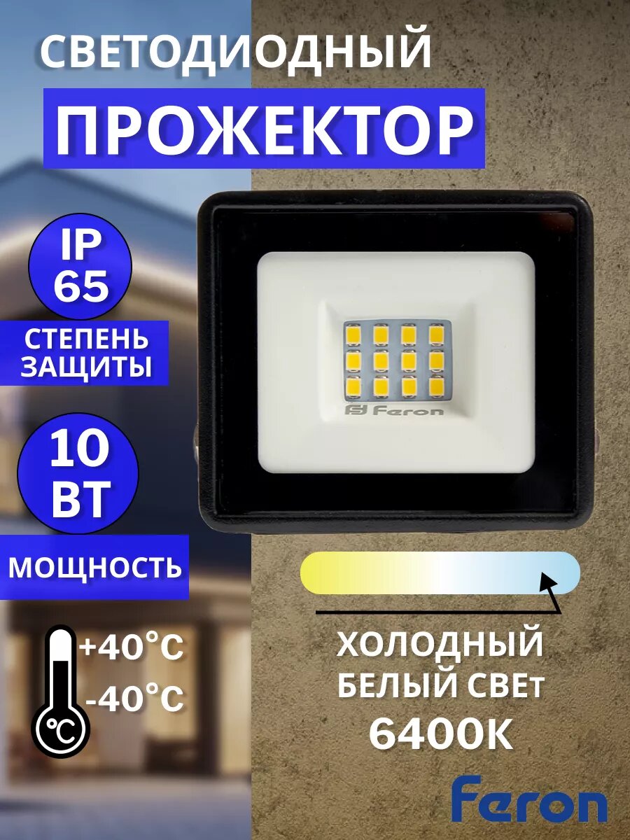 Светодиодный прожектор Feron LL-918, 10 Вт, IP65, уличный, 6400К, белый