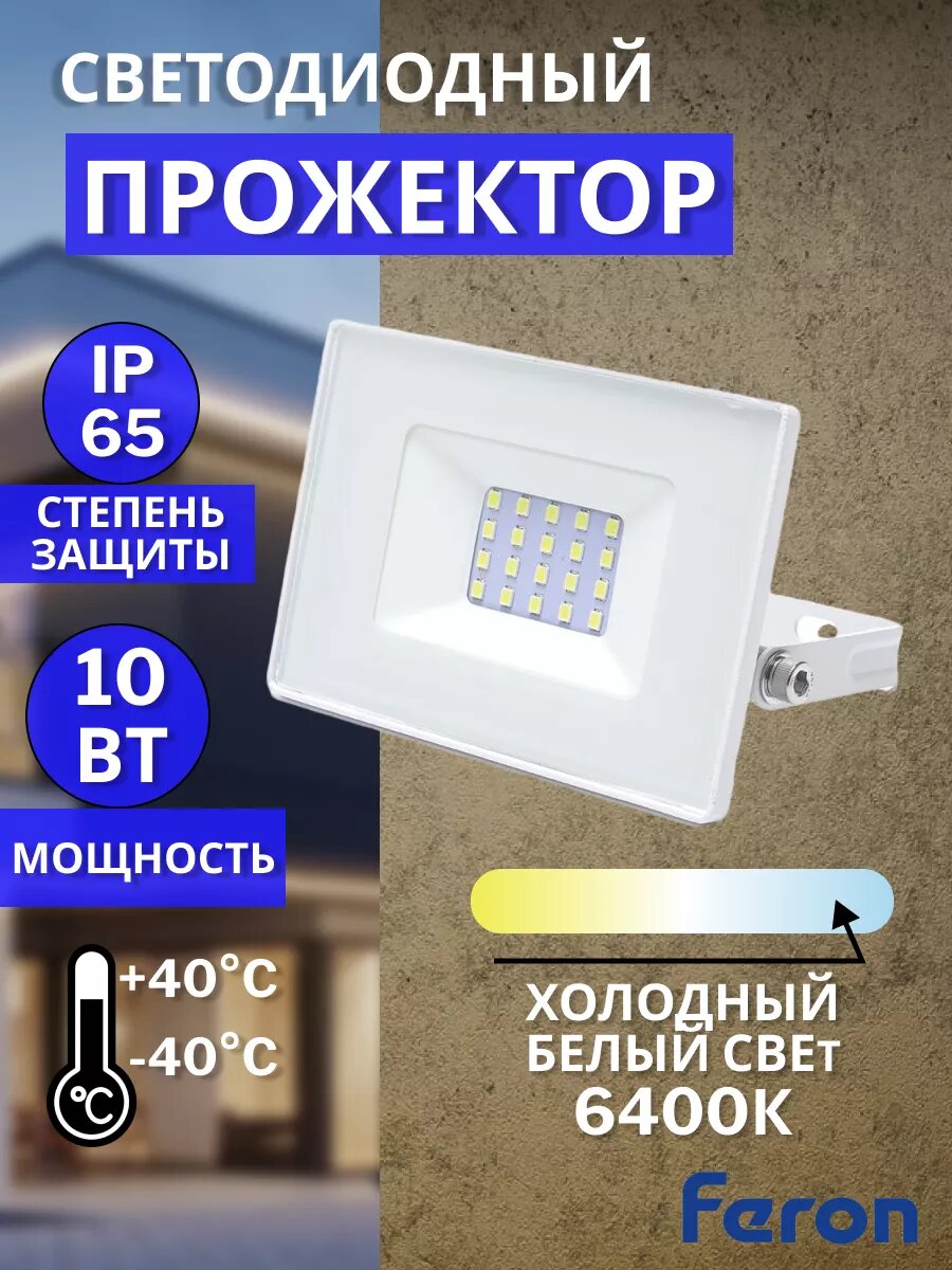Купить Светодиодный прожектор Feron LL-918, 10 Вт, IP65, уличный, 6400К, белый